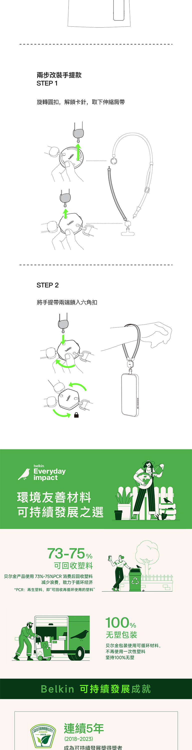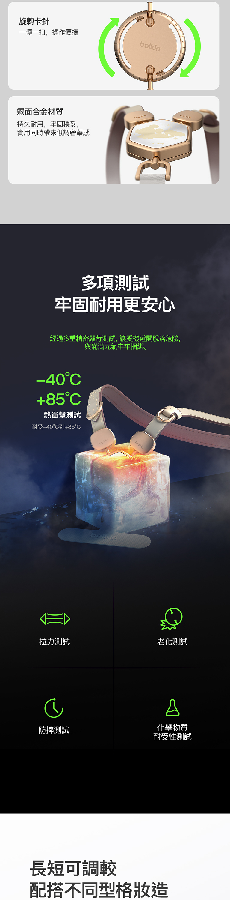 Free up your hands while using the reversible & replaceable magnetic plates to customize your own strap whenever you like. First-of-its-kind buckle designs to attach and remove your phone. Wrist band can be detachable and used as standalone.