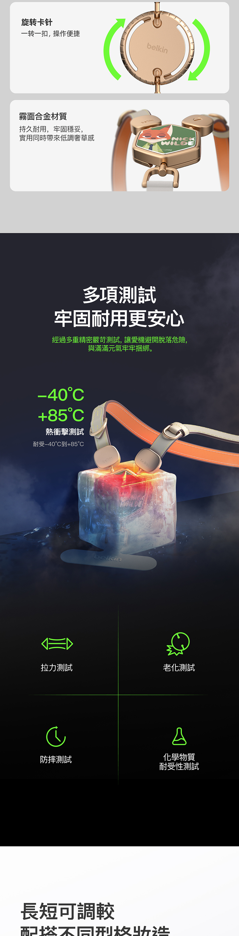 Free up your hands while using the reversible & replaceable magnetic plates to customize your own strap whenever you like. First-of-its-kind buckle designs to attach and remove your phone. Wrist band can be detachable and used as standalone.
