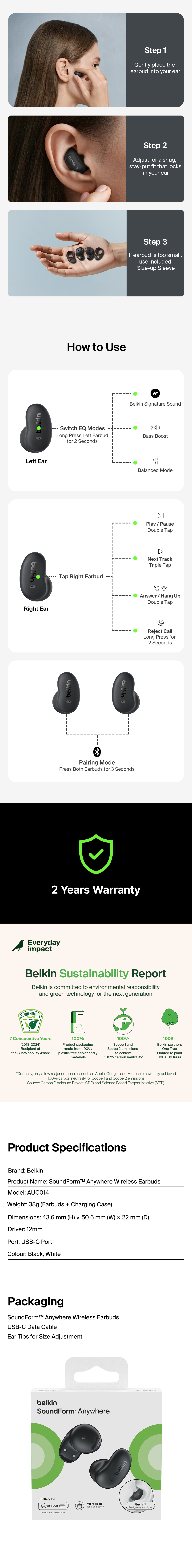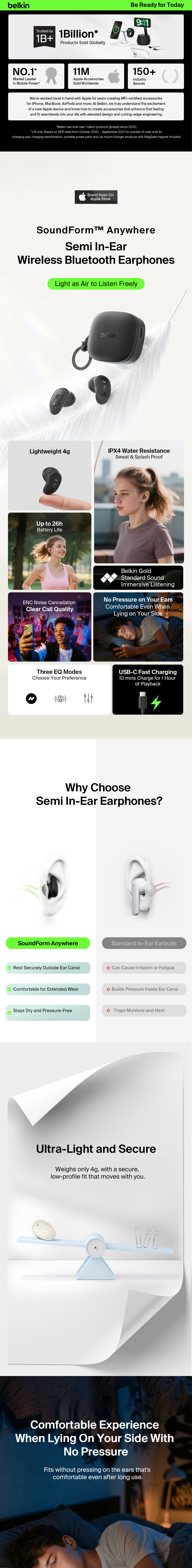 High-performance and ultra-comfortable, the SoundForm Anywhere is the perfect all-day earbud. Made for workouts, commutes and even side sleeping, these earbuds are virtually invisible with a sleek, semi in-ear design that fits flush to the ear.