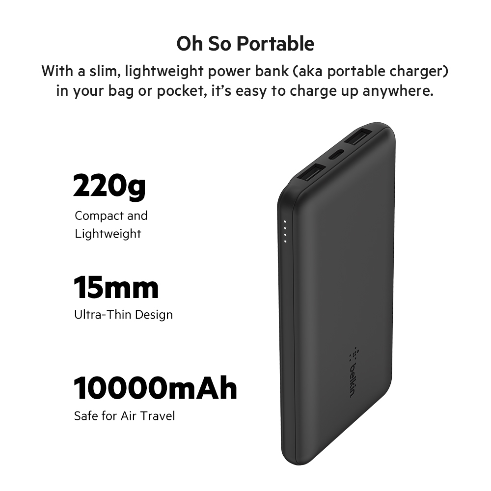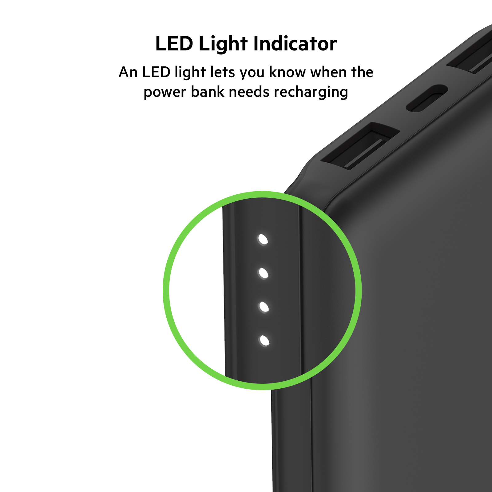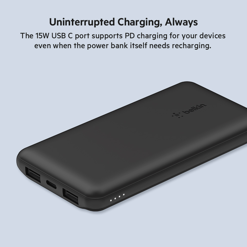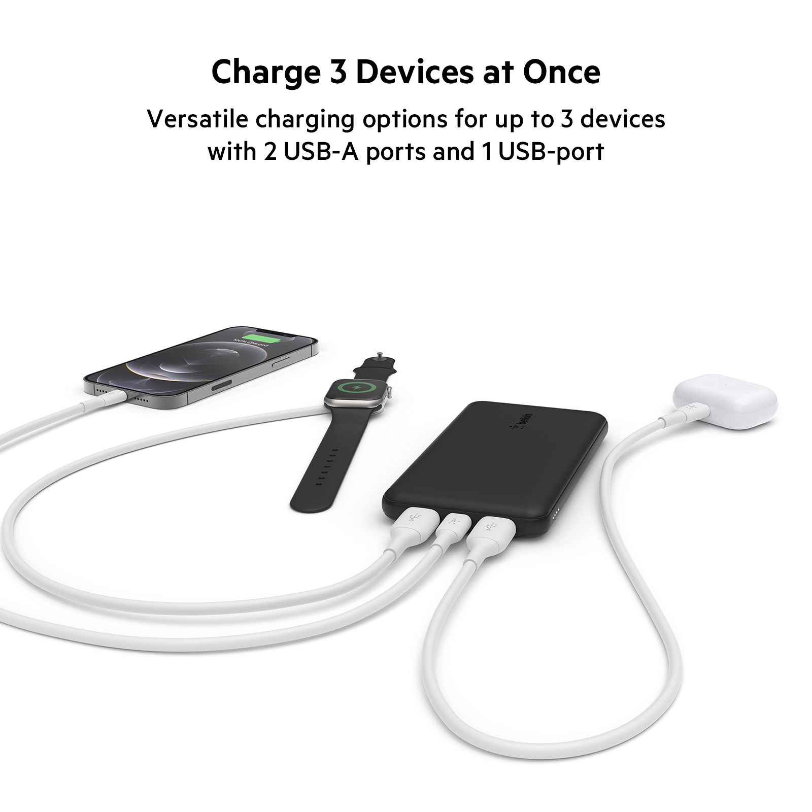Charge three devices at the same time with our BoostCharge Power Bank 10K§. Two USB ports and one USB-C® port keep all your devices powered with up to 40§ hours of battery life for your smartphone and smart devices.