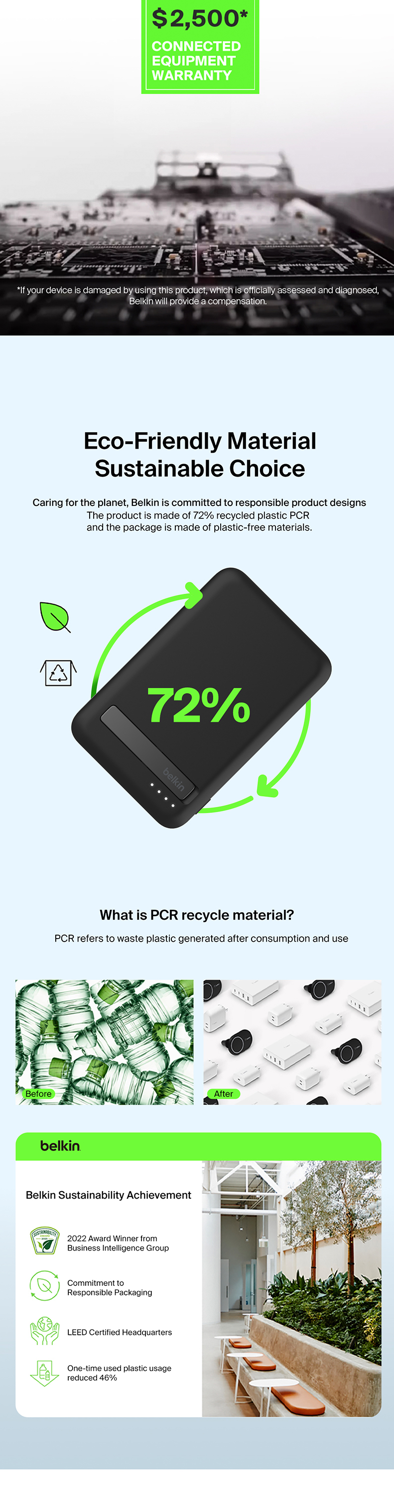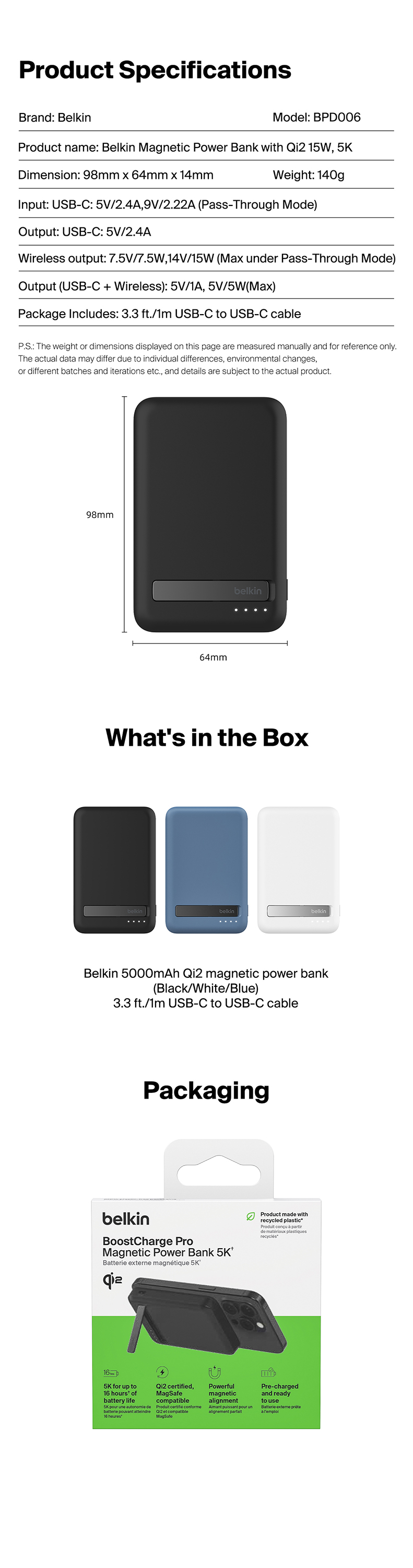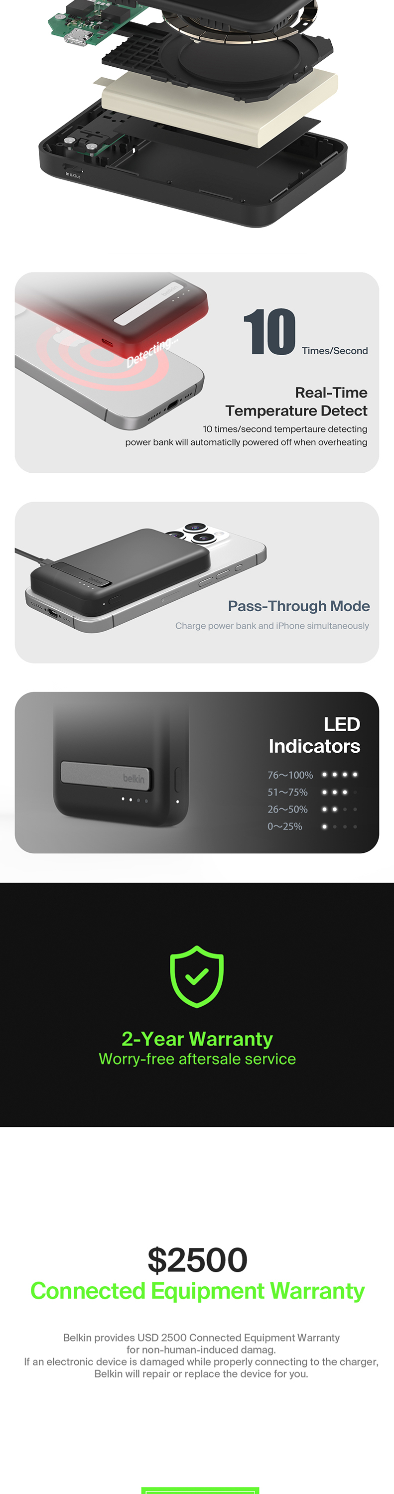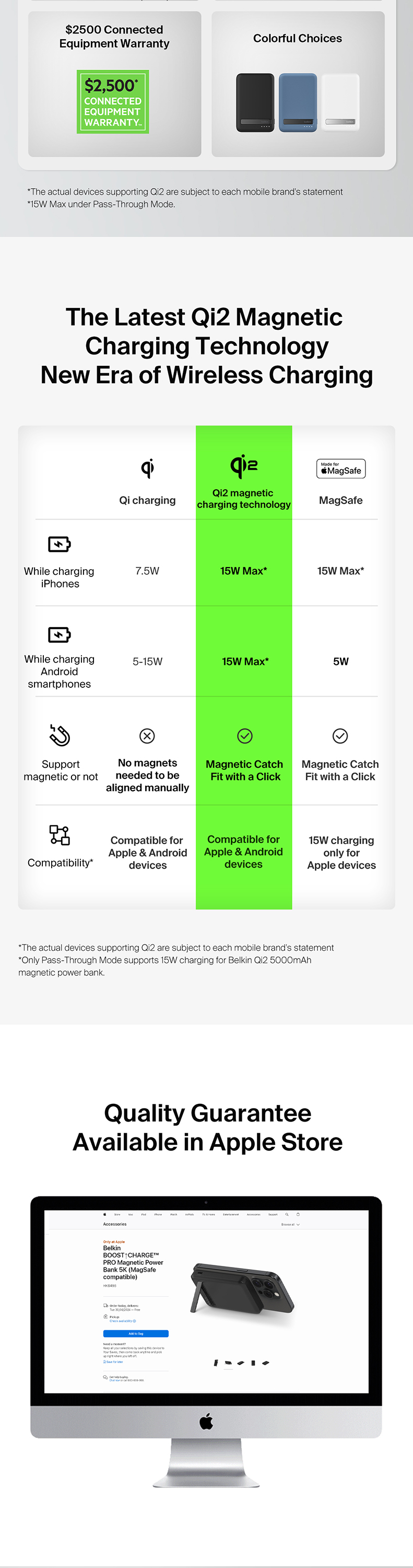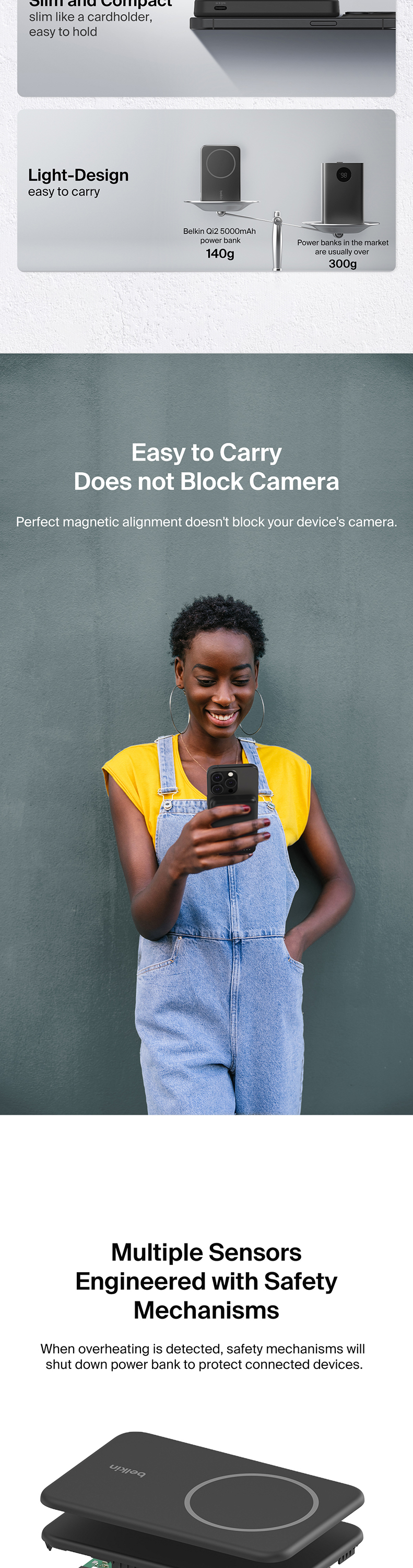 Wirelessly charge iPhone and other Qi2-enabled smartphones quickly and safely with our BoostCharge Pro Magnetic Power Bank with Qi2 15W 5K§. Your Qi2 and MagSafe compatible devices will have easy and seamless on-the-go charging up to 15W. Watch video, stream or create content at the perfect viewing angle with the integrated kickstand — even while your device is charging.