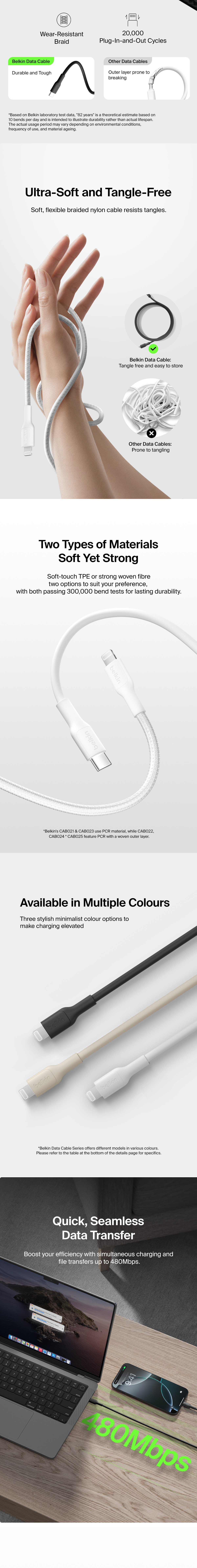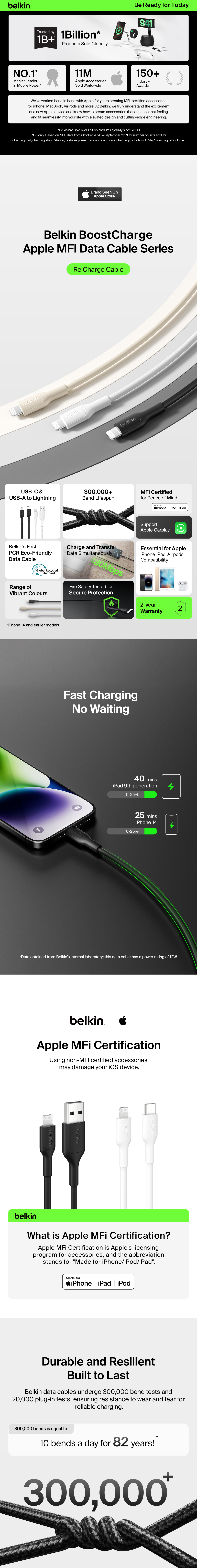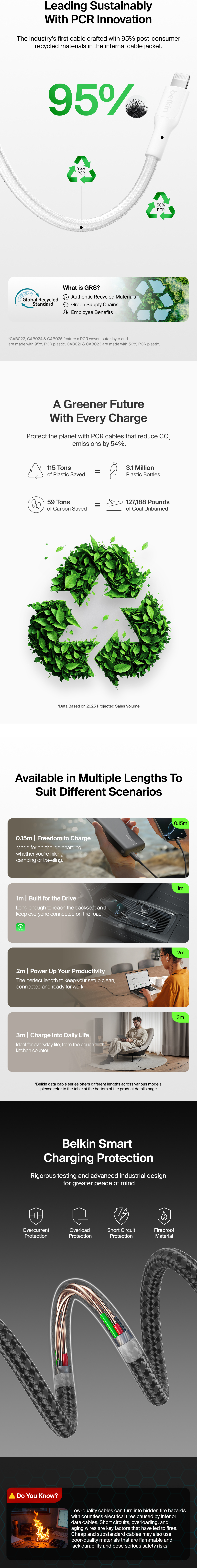 Power your iPhone 16 from 0-50% in just 25 minutes.† Sustainability and performance meet in this durable cable that withstands 350K+ bends and 20K+ plugs.‡ Compatible with iPhone 16, Samsung Galaxy S25, and most tablets for a greener future.