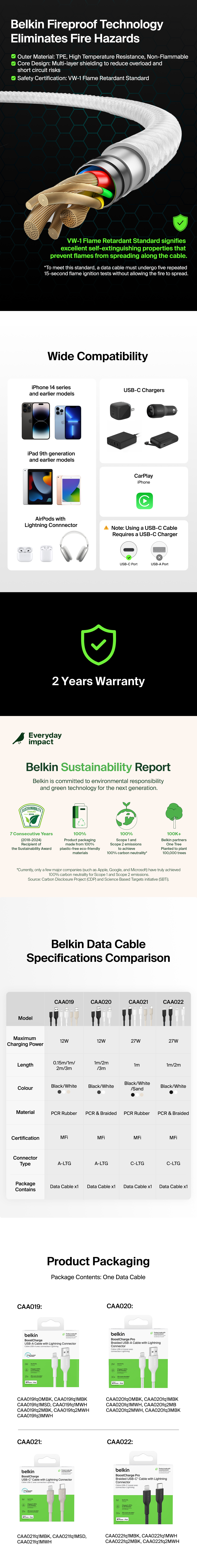 FEATURES*External braiding is made of 94.5% post-consumer recycled polyester. Cable head and internal jacket are made of at least 50% post-consumer recycled thermoplastic.