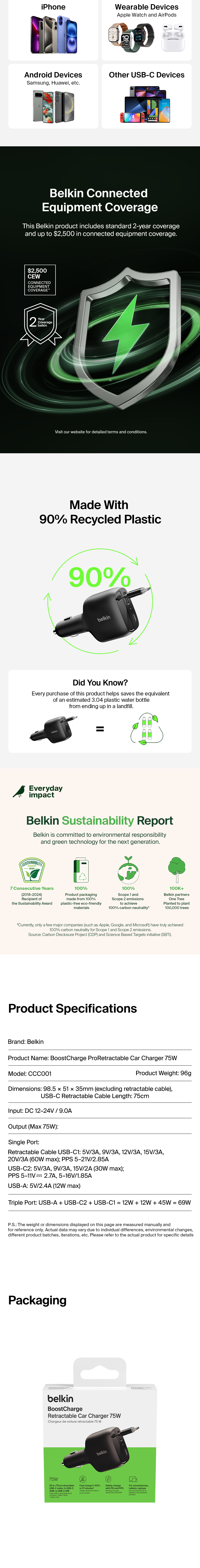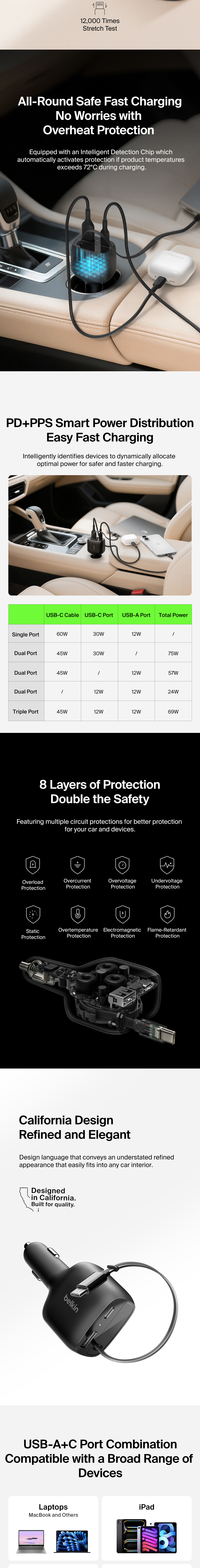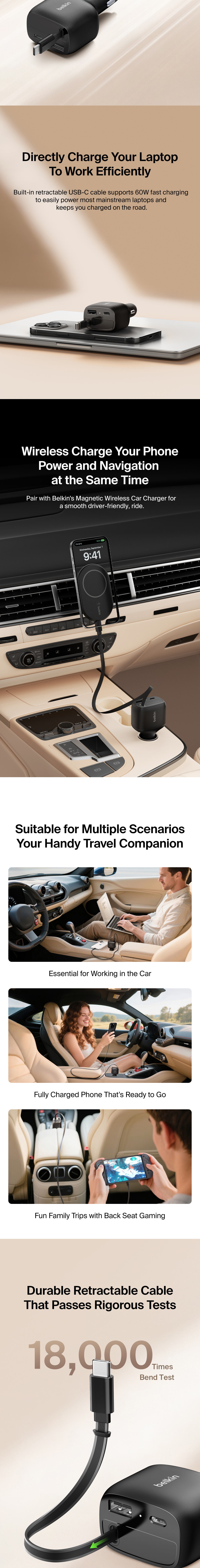 This car charger has two ports (USB-C + USB-A) plus a retractable USB-C cable, making it a game changer when you’re in your car. Its tangle-free 75cm cable supports 60W maximum output and charges most laptops in the market.