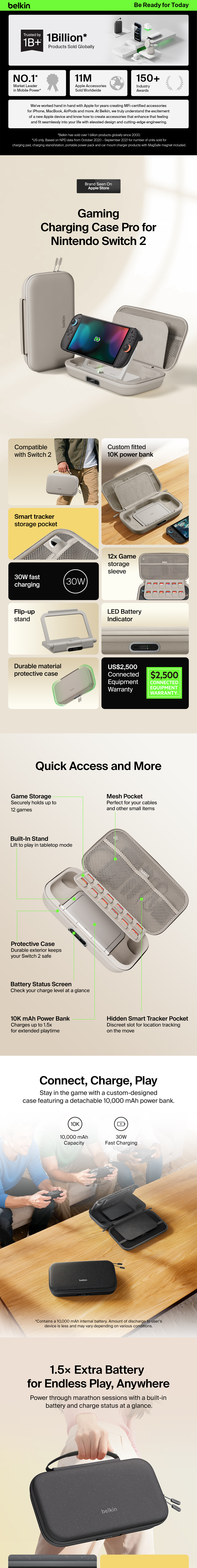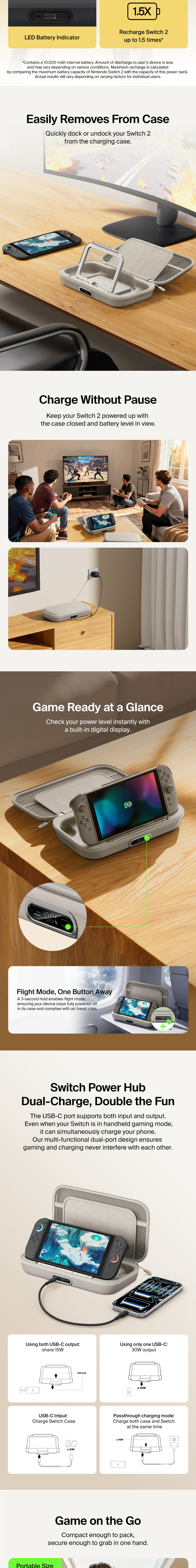 Keep the games going with our Charging Case Pro. You can power up and play longer with a premium charging case built specifically for the Nintendo Switch 2. Engineered with high-capacity charging and crafted from durable, high-quality materials.