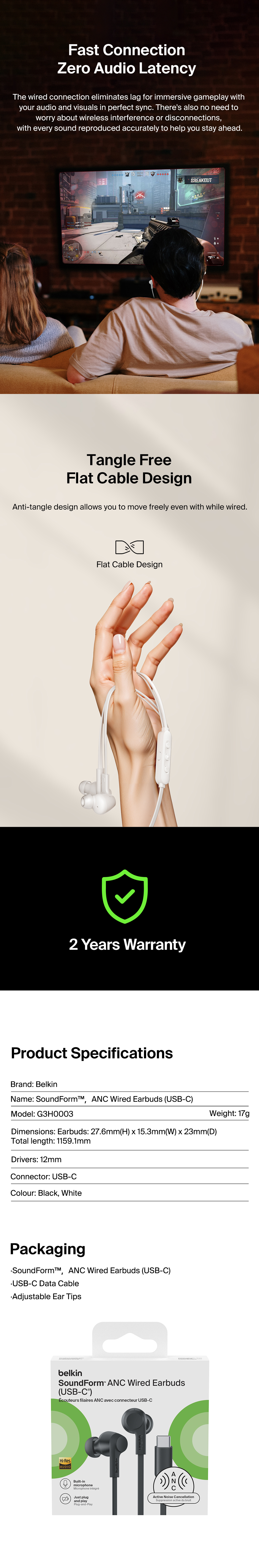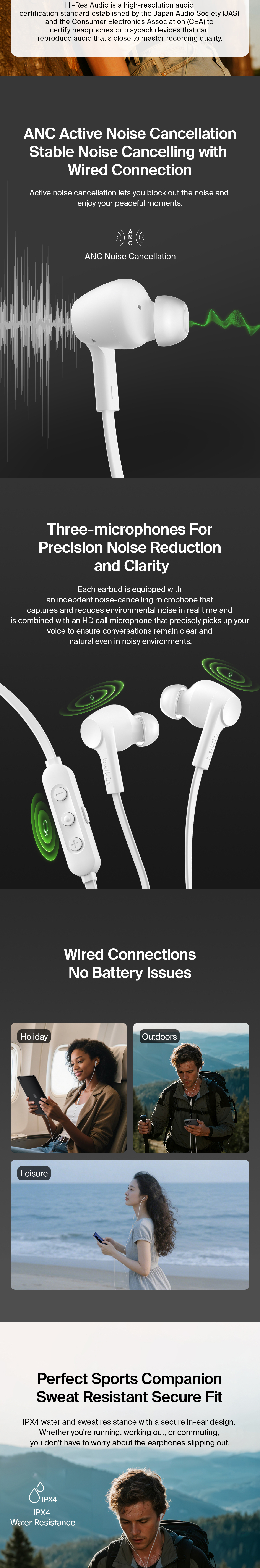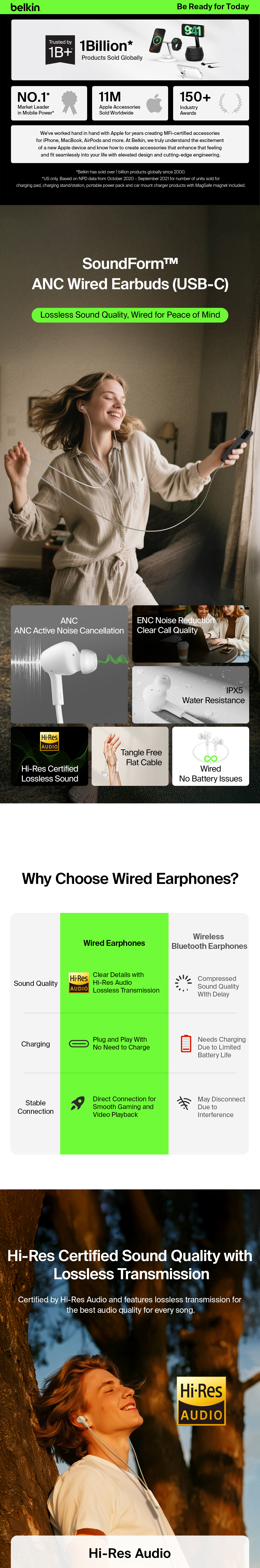 Get simple and retro-styled USB-C Wired Earbuds with Active Noise Cancellation to deliver high-quality, immersive sound with supreme comfort and fit. These durable compact earbuds offer certified Hi-Res Audio without distraction.