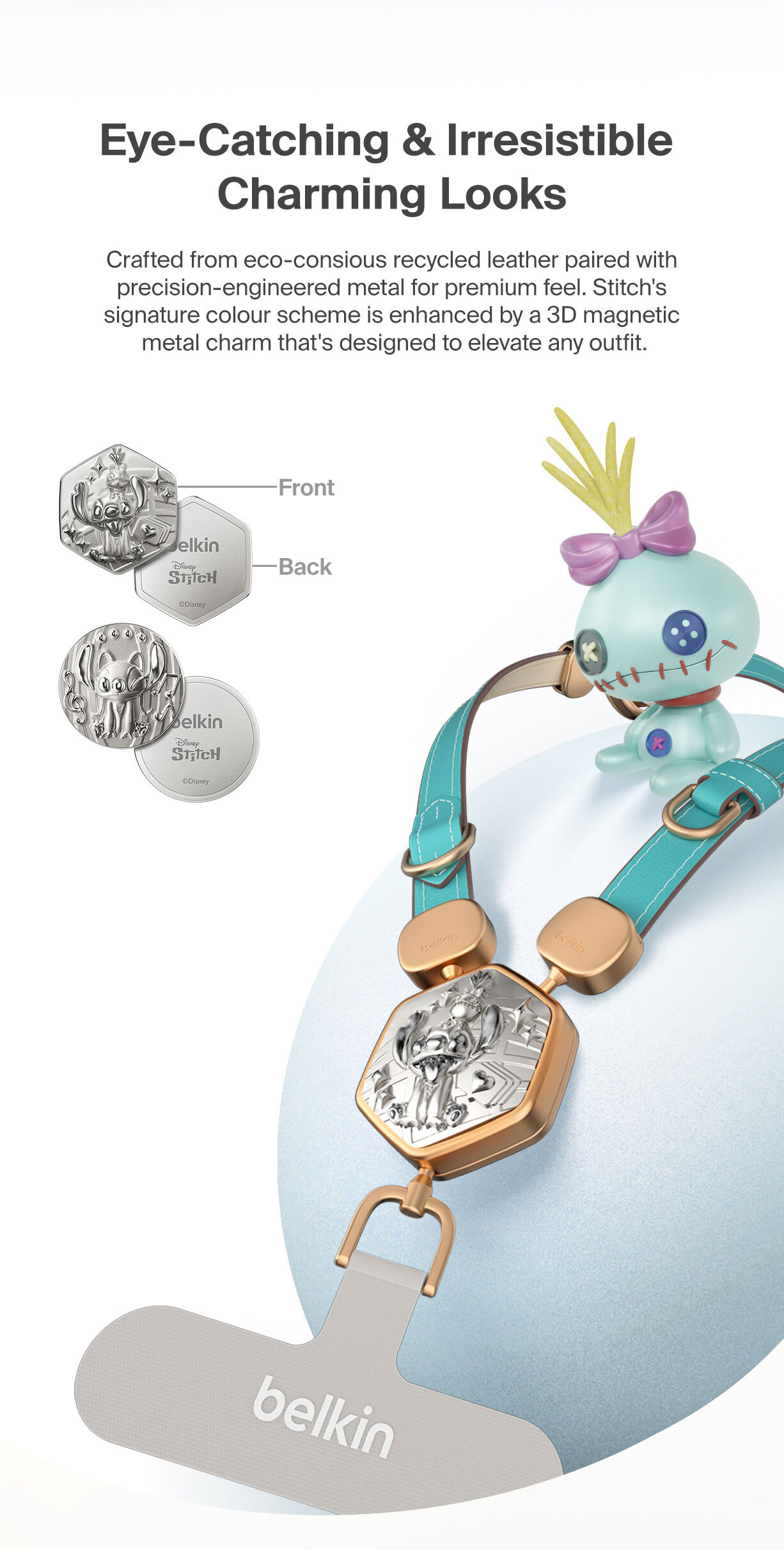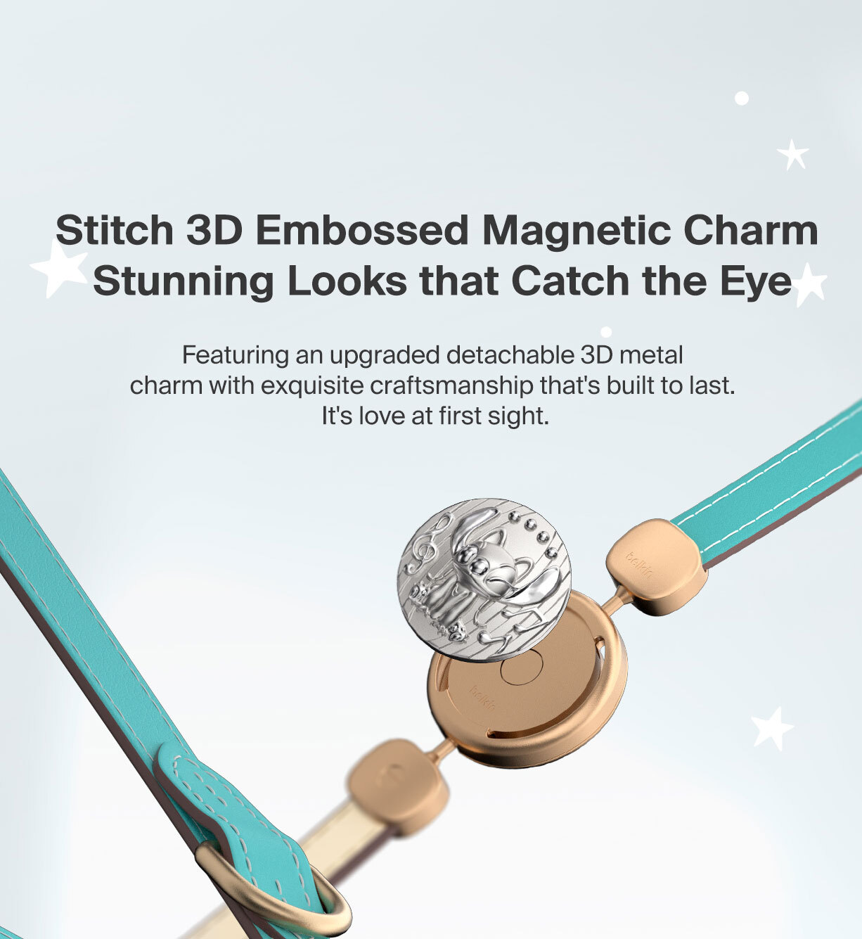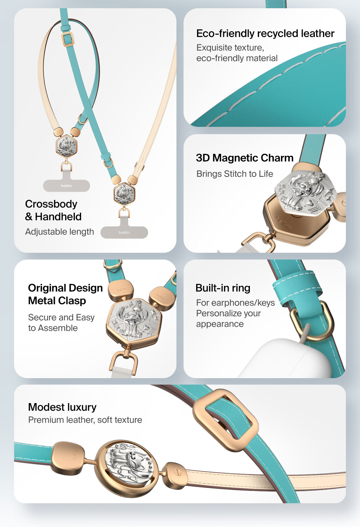 Charming embossed design crafted from 10mm eco-friendly recycled leather, featuring a sophisticated metallic clasp. Wrist band can be detachable and used as standalone.