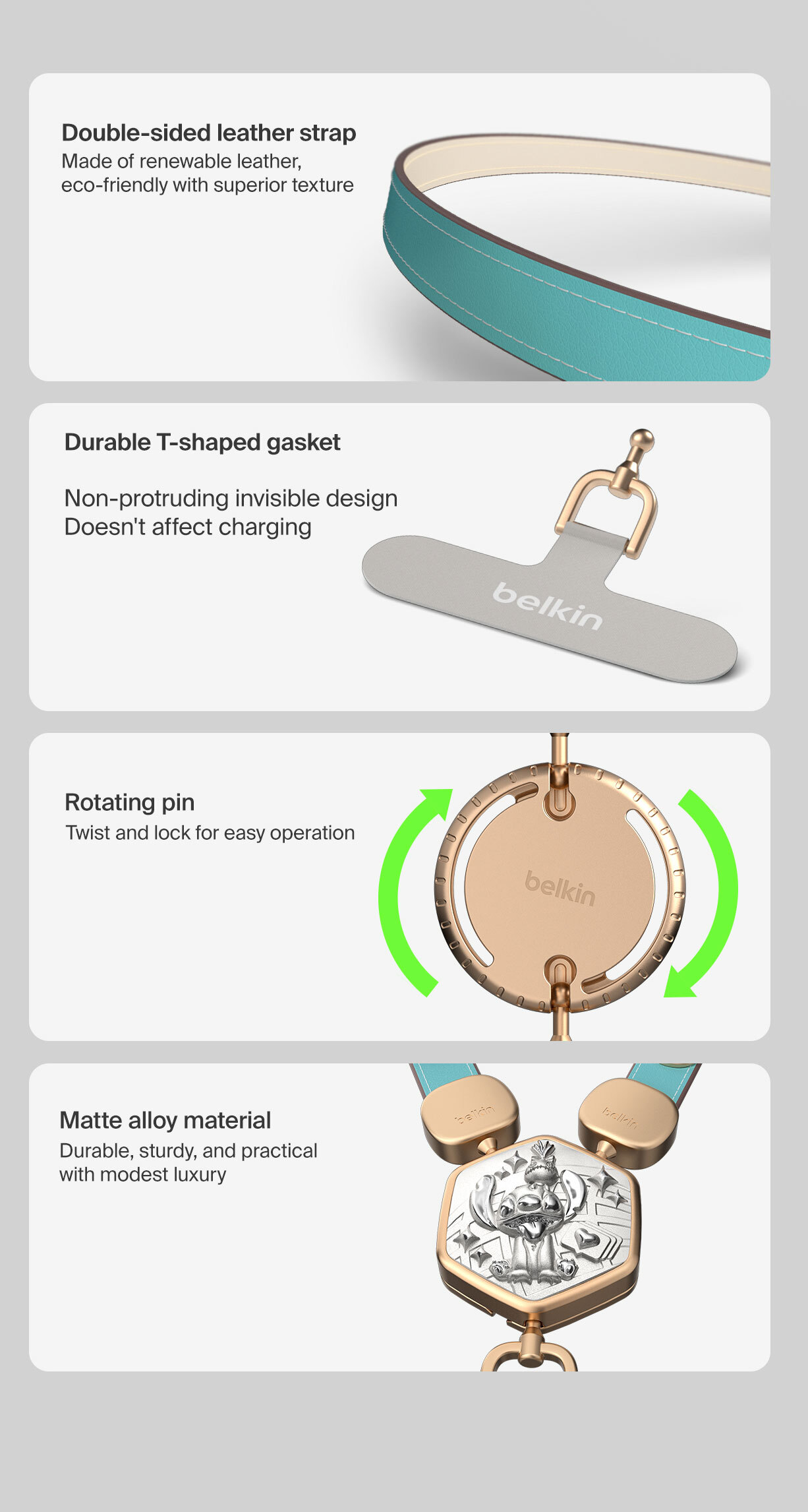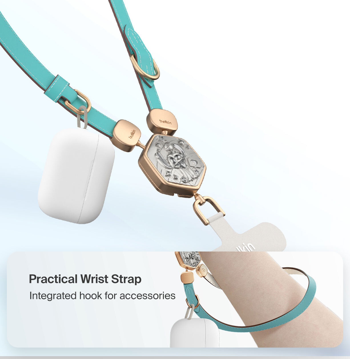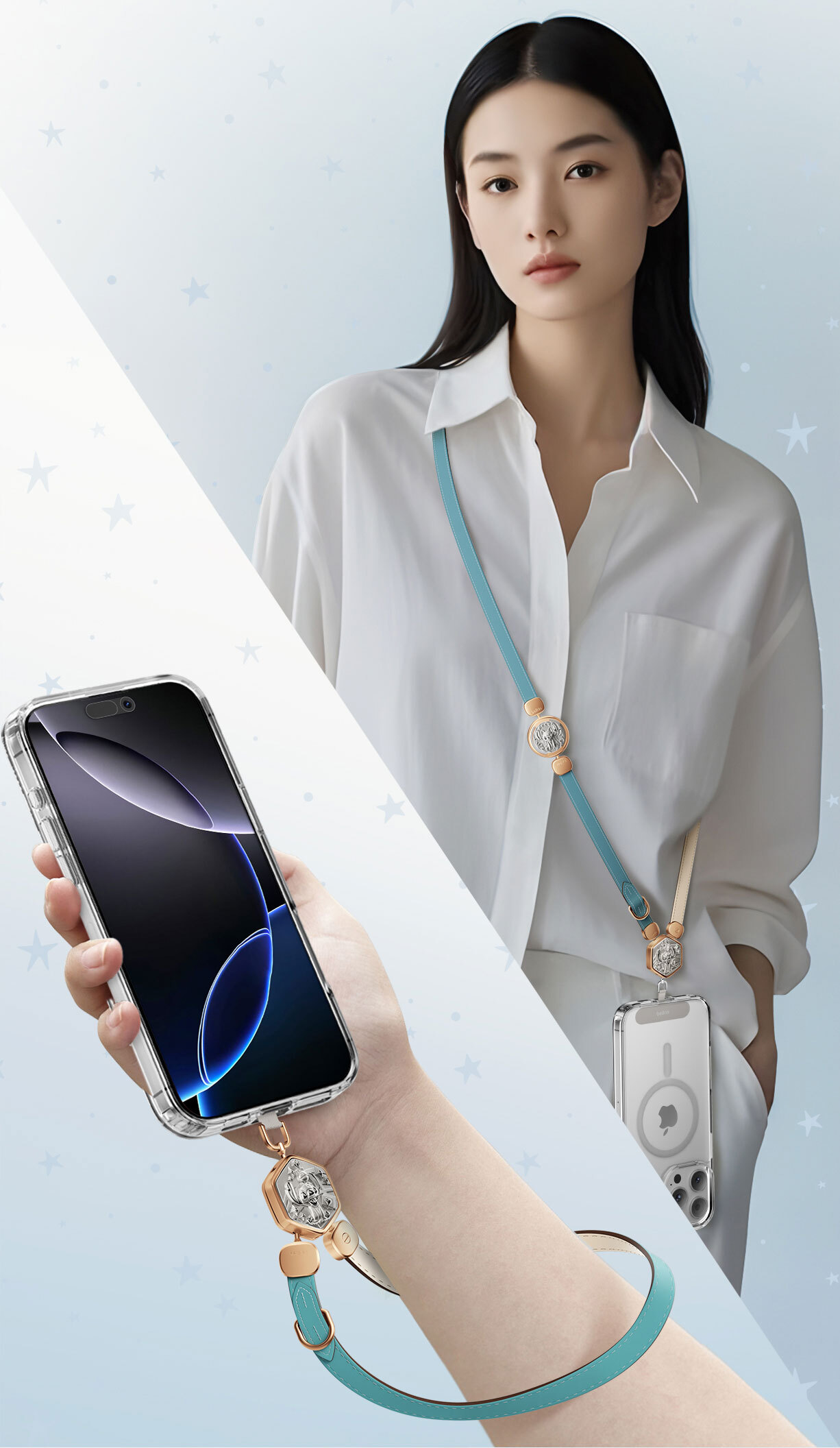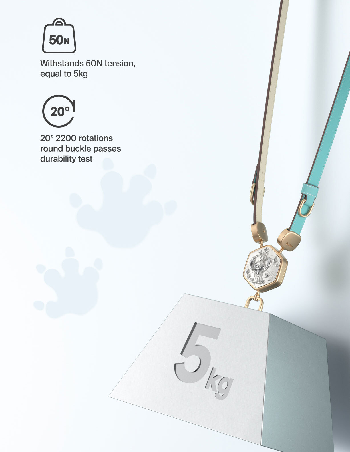 Charming embossed design crafted from 10mm eco-friendly recycled leather, featuring a sophisticated metallic clasp. Wrist band can be detachable and used as standalone.