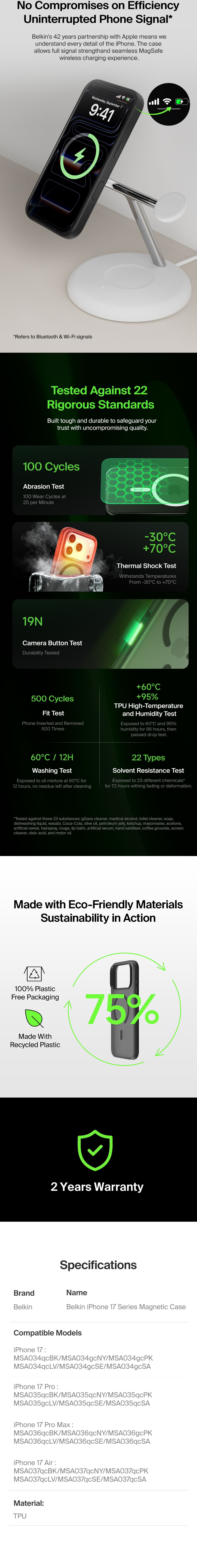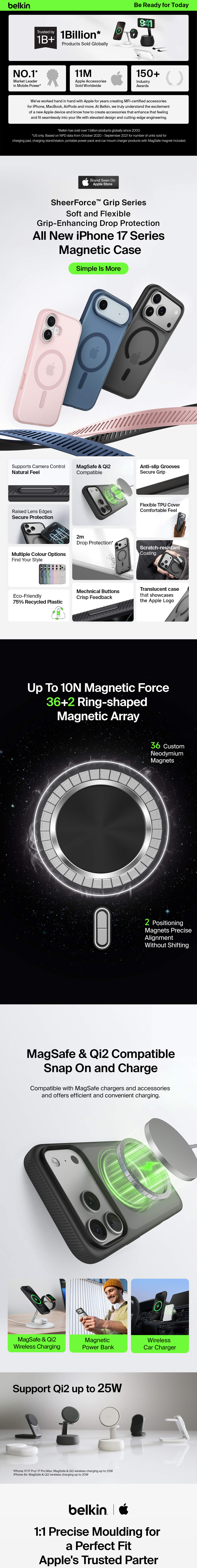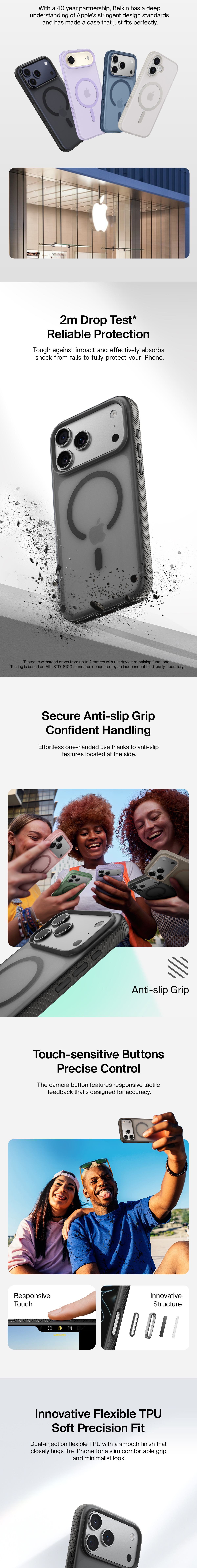 Protect your iPhone 17 with a MagSafe-compatible, magnetic phone case, designed for drop protection up to 2m.† Anti-yellowing** materials help prevent the case from discoloration.