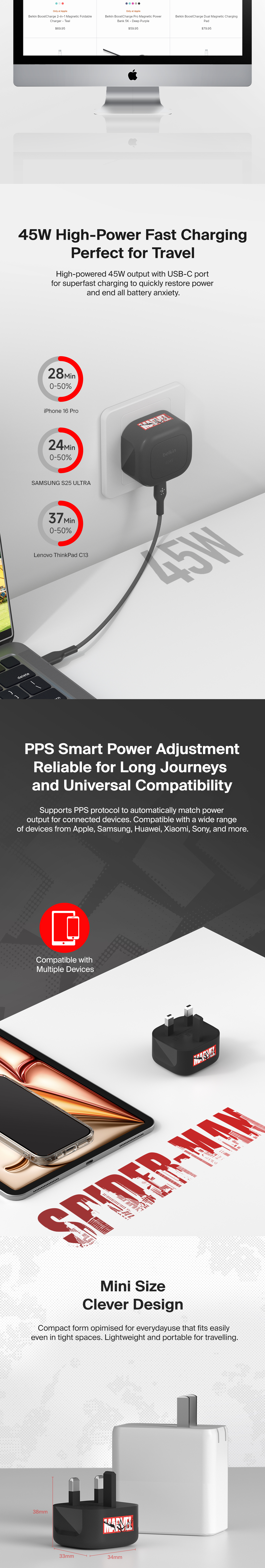 This compact charger offers up to 45 watts of power to charge your phone, Chromebook or tablet, or to power your MagSafe-enabled accessories at their optimal speed.