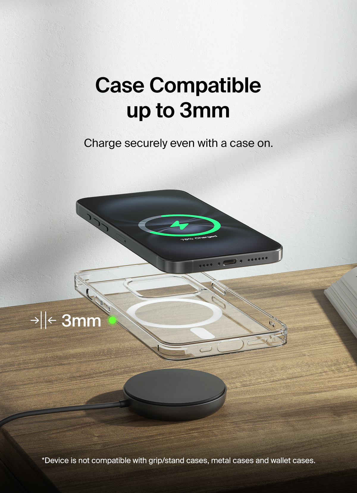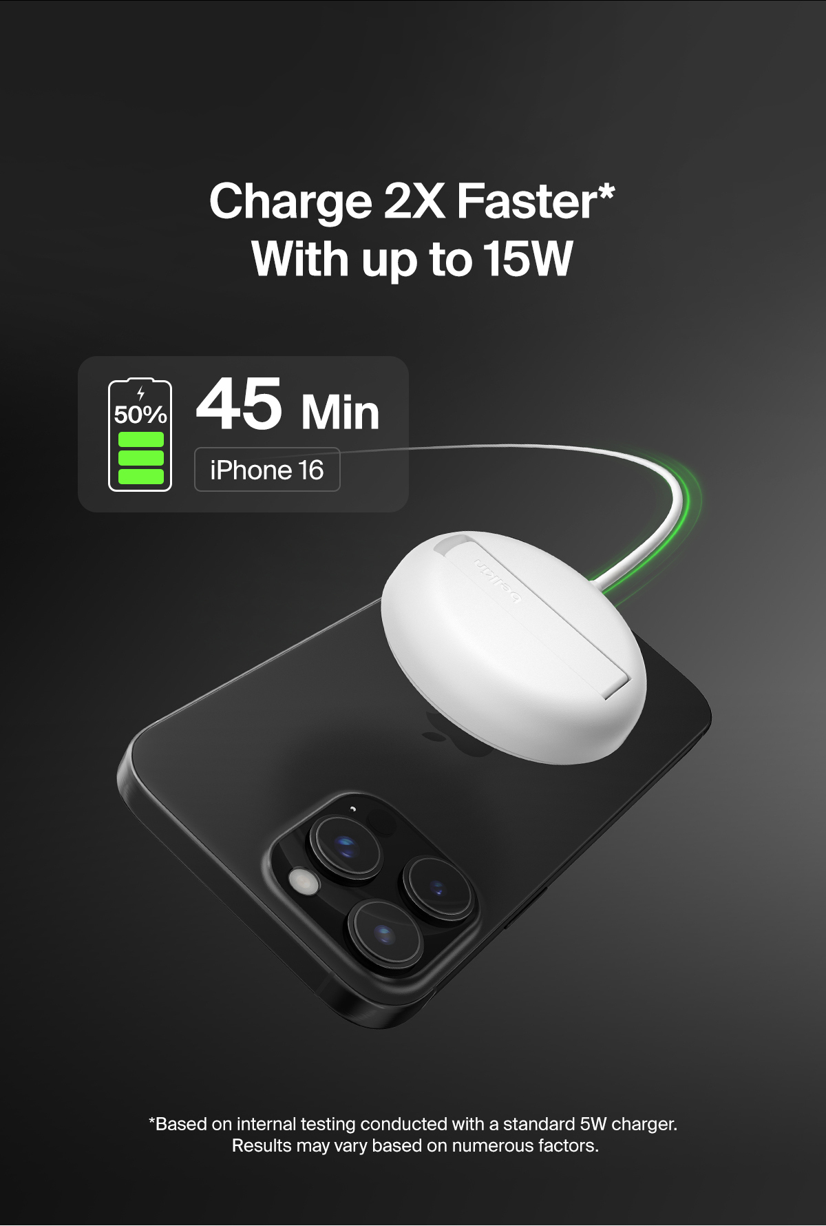 Elevate your iPhone charging experience with our Magnetic Wireless Charging Pad with Qi2. Offering up to 15W fast wireless charging, this sleek and efficient pad ensures your device is ready for use.