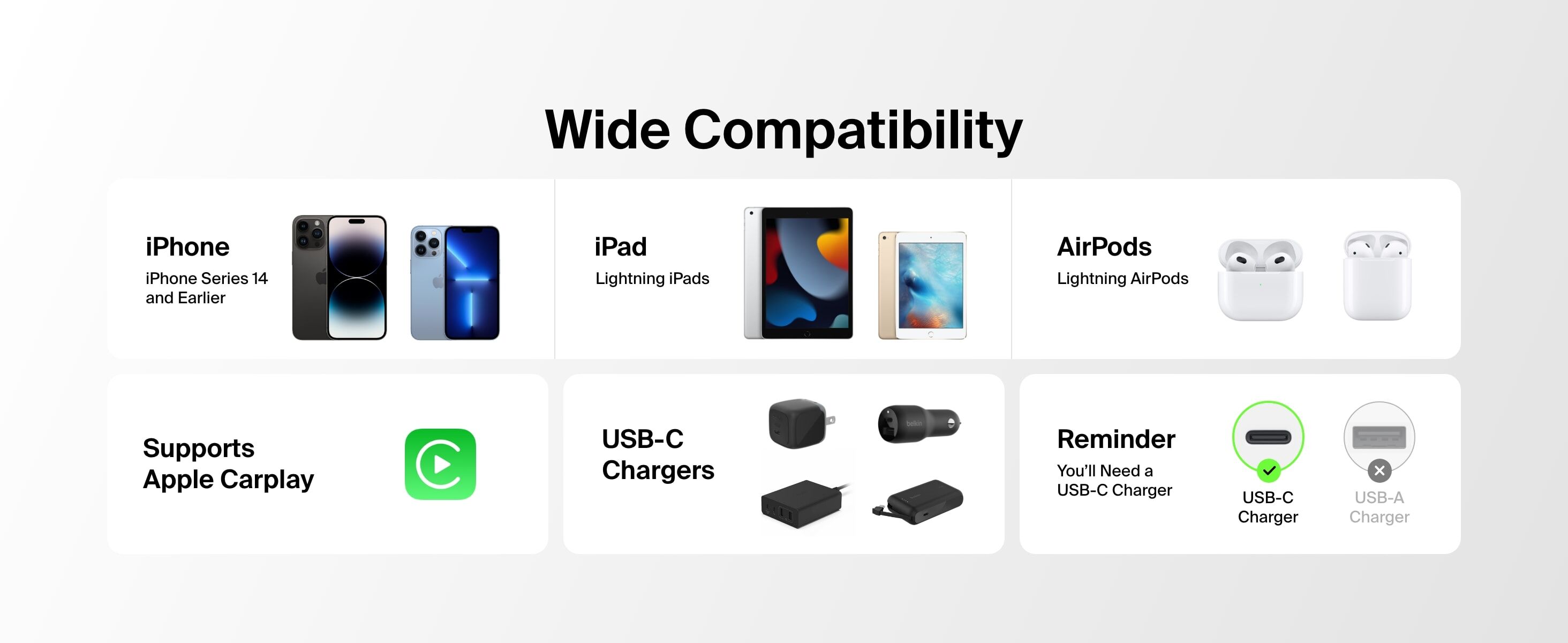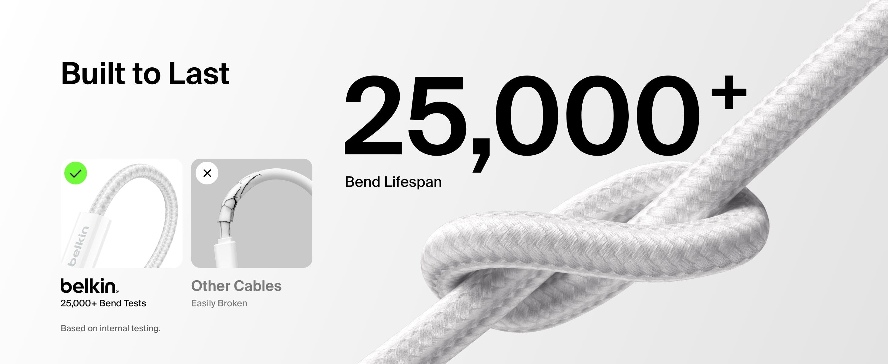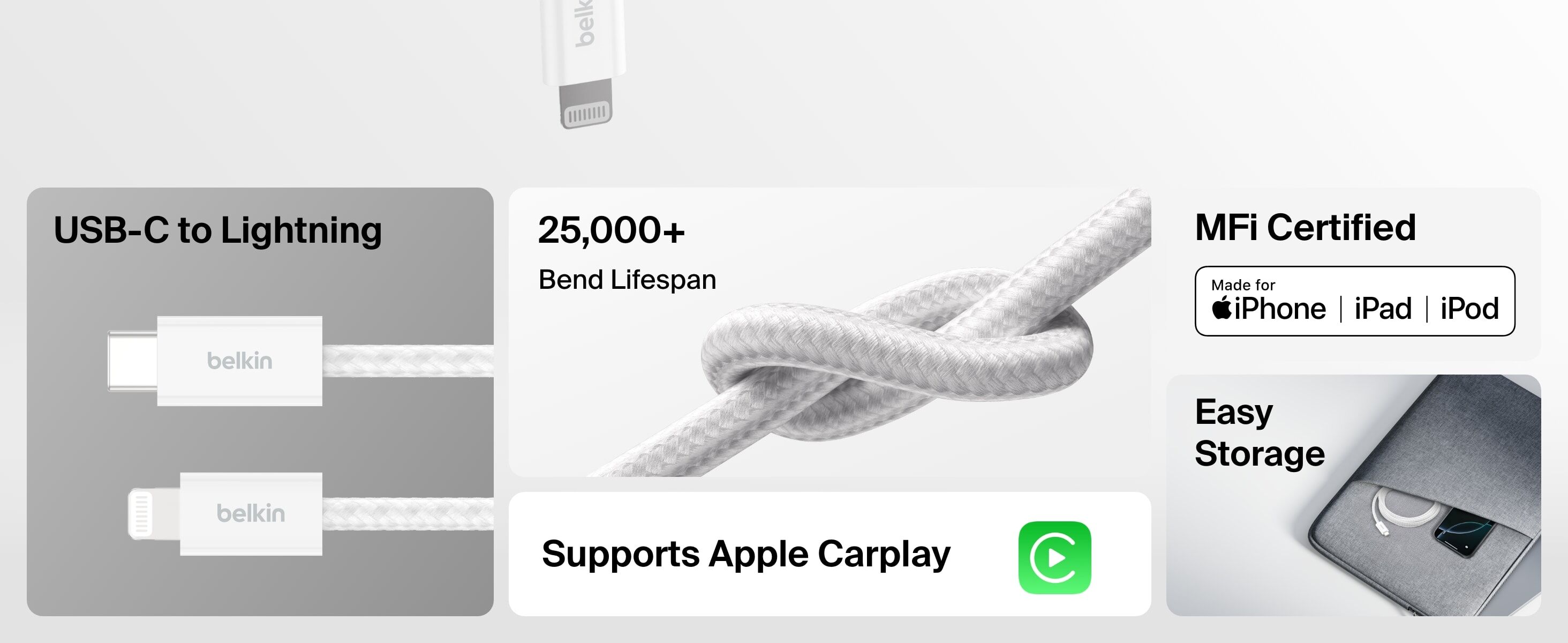 Enjoy fast charging and extra durability with braided USB-C to Lightning cables. When paired with an 18W USB-PD Charger, our MFi-certified cables can fast charge your iPhone zero to 50% in 30 minutes.