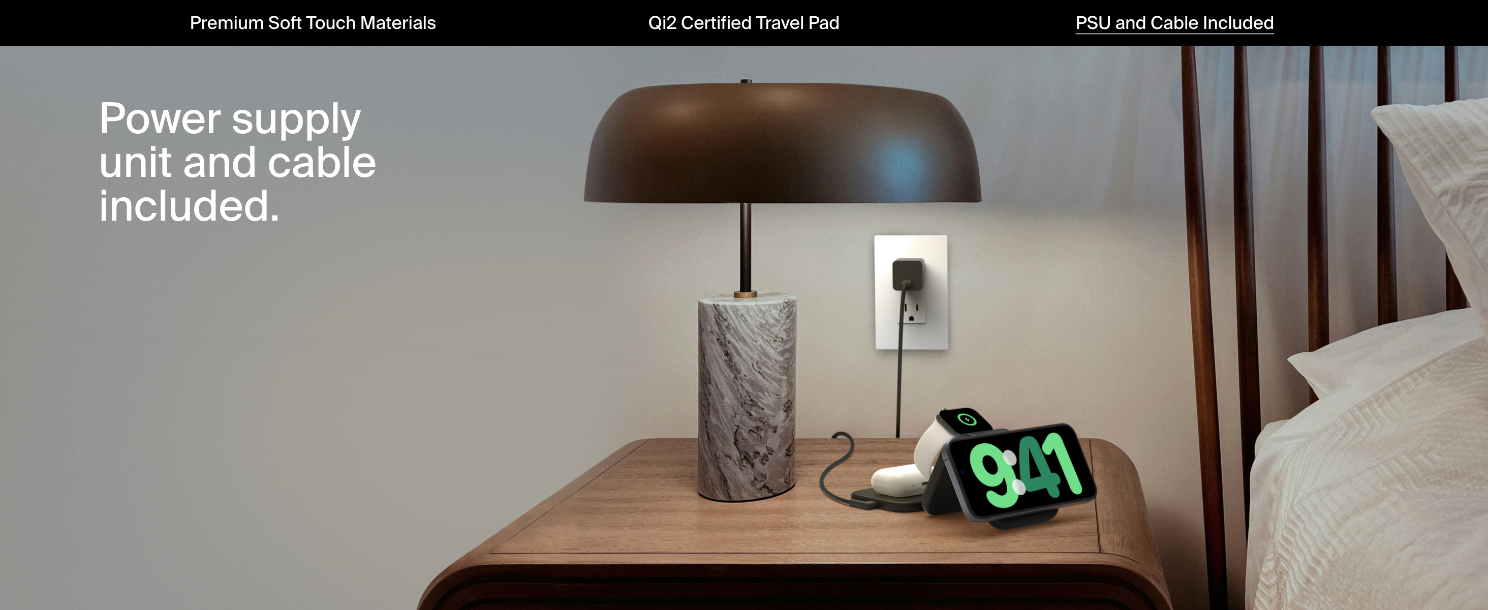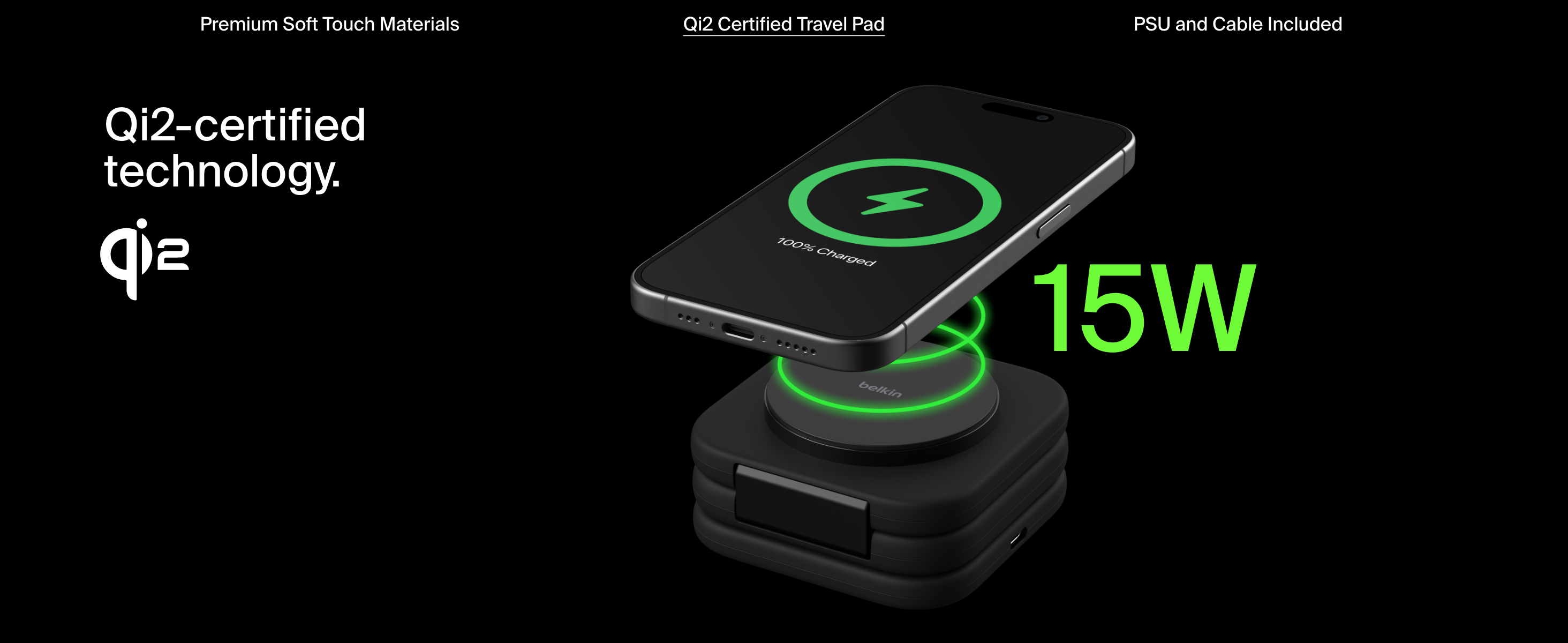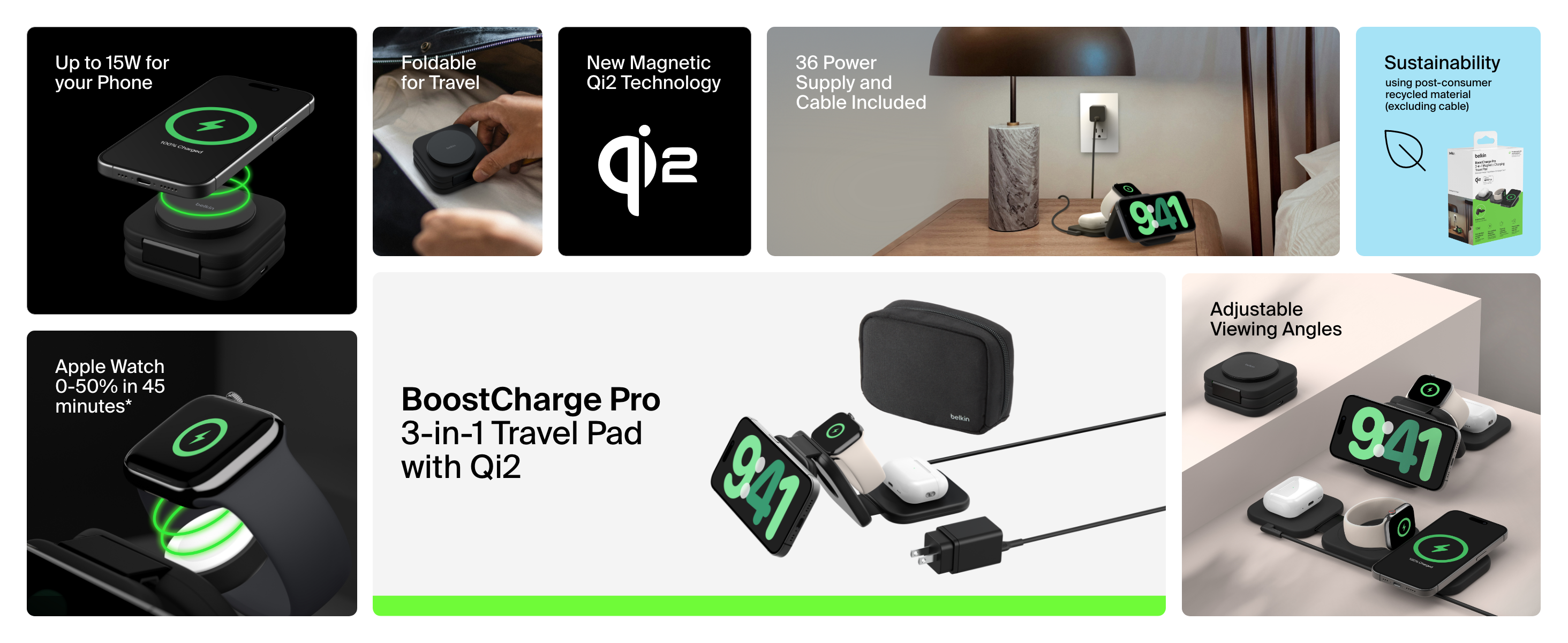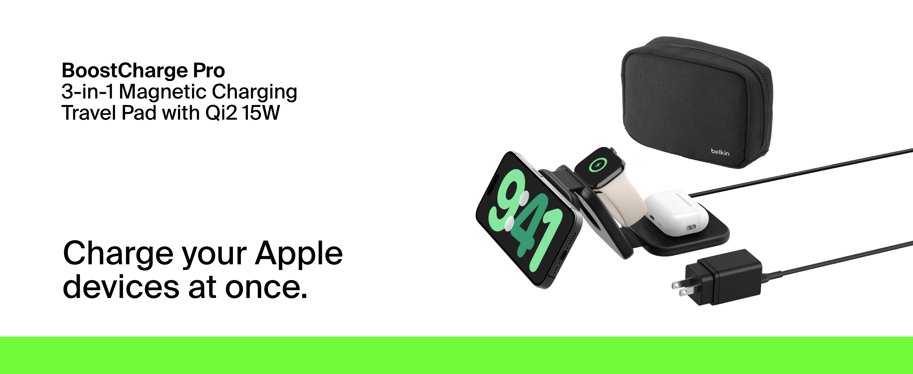 Conveniently fast charge two devices simultaneously (iPhone, Apple Watch, or AirPods) using Qi2. Charge your iPhone up to 15W in landscape mode to be StandBy ready for hands-free streaming, and your Apple Watch Series 7, 8, 9 and Ultra 1 and 2. Foldable Design.