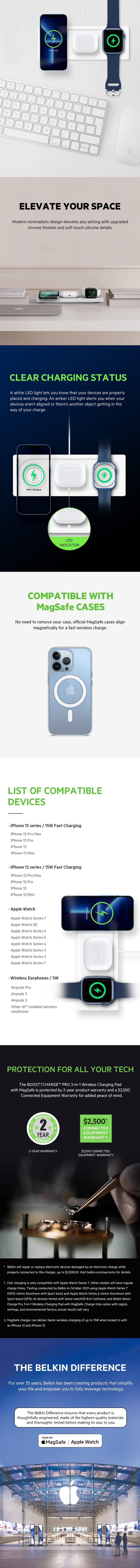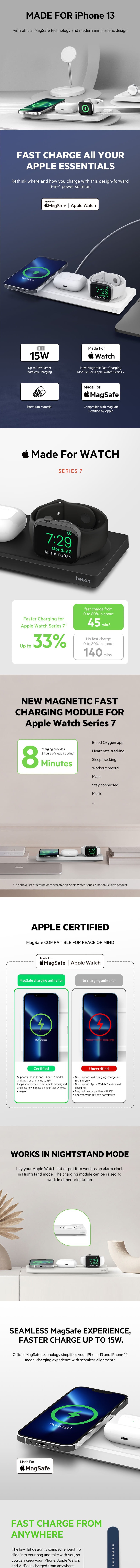 With the new magnetic fast charging module for Apple Watch and MagSafe technology for iPhone 15/ iPhone 14 / iPhone 13 / iPhone 12, you can charge your Apple devices faster. Charging has never been so convenient and portable.