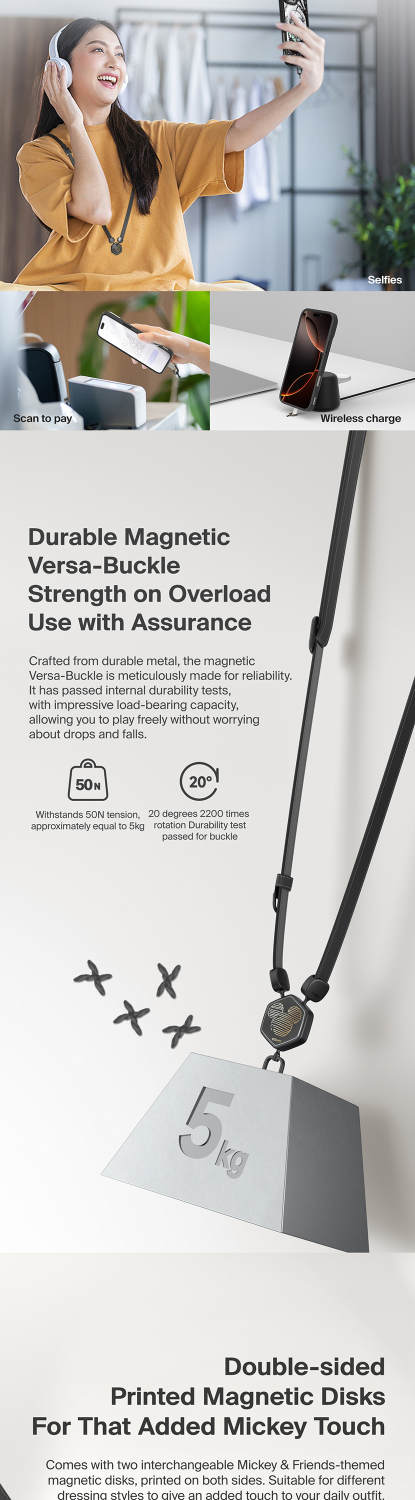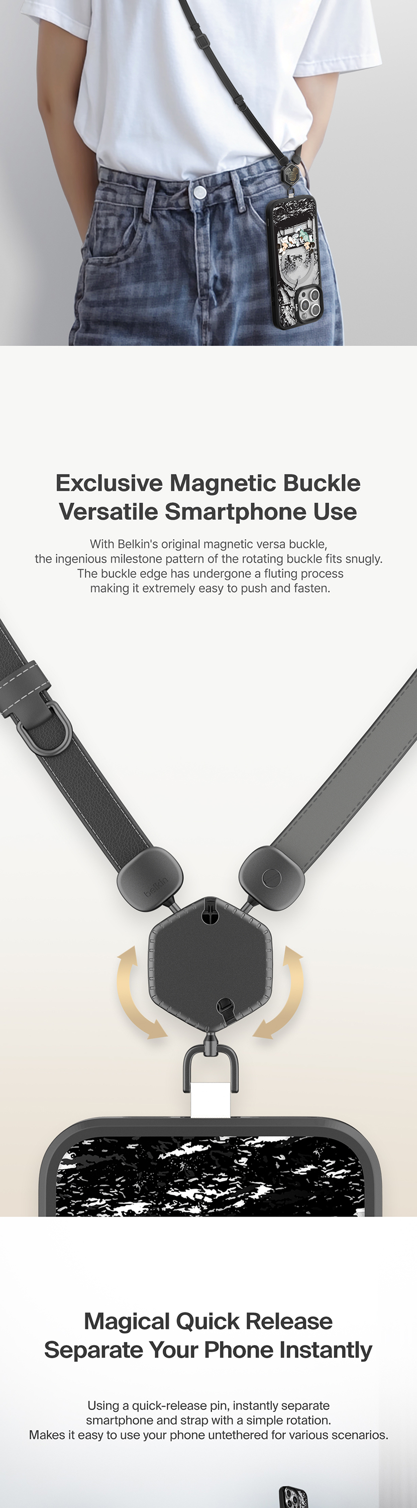 Free up your hands while using the reversible & replaceable magnetic plates to customize your own strap whenever you like. First-of-its-kind buckle design to swiftly fasten and release.