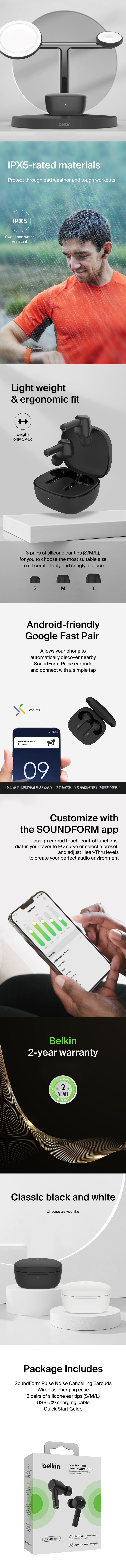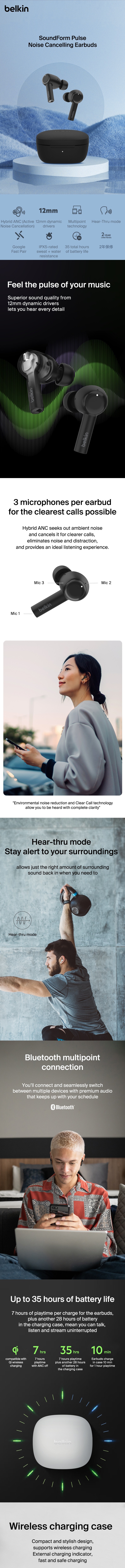 Enjoy high-fidelity sound and premium features. Three mics per earbud drive Hybrid ANC (Active Noise Cancelling) technology to quiet distractions and the roar of everyday elements.