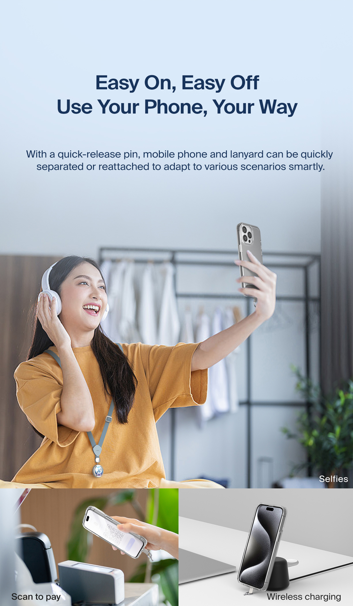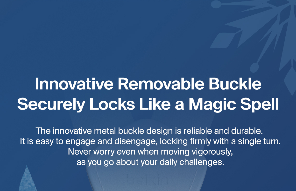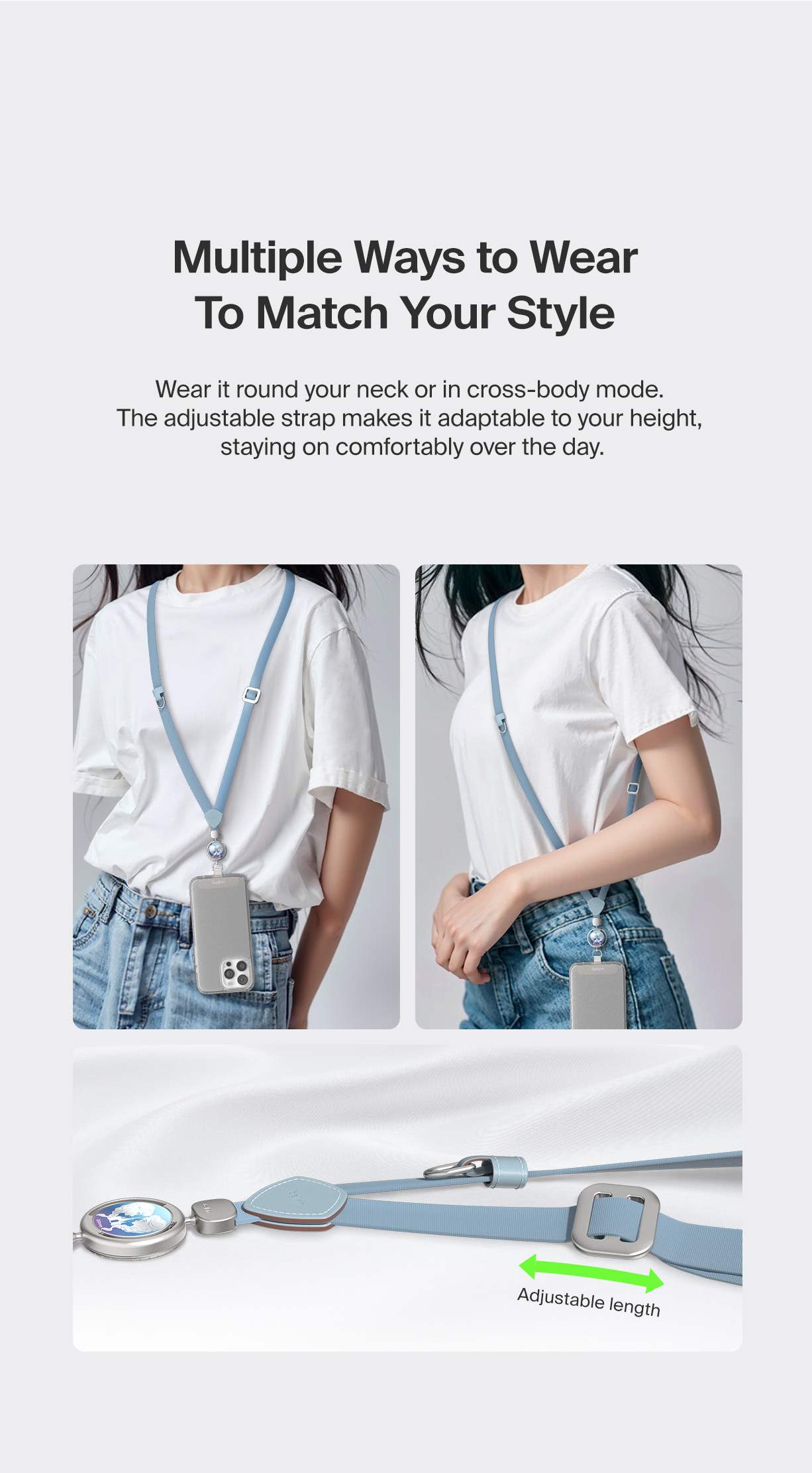 Free up your hands while using the reversible & replaceable magnetic plates to customize your own strap whenever you like. First-of-its-kind buckle design to quickly attach and remove the phone strap.