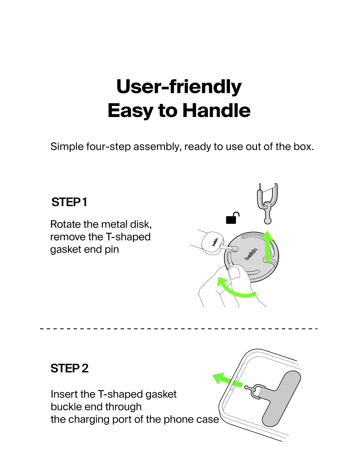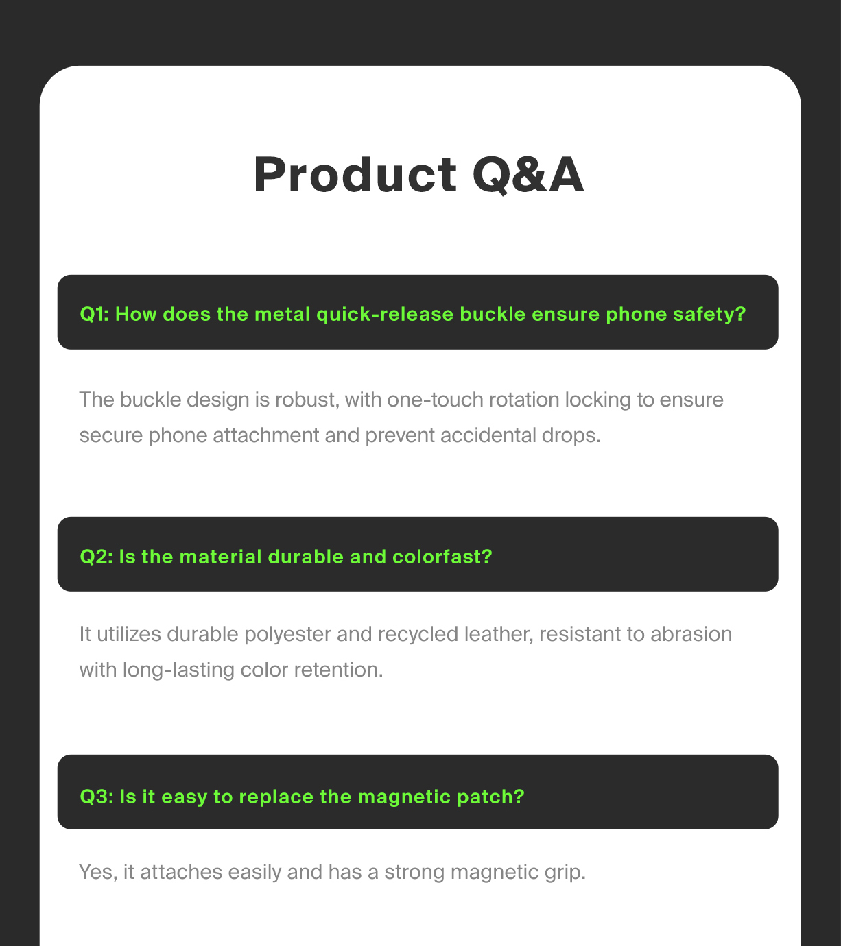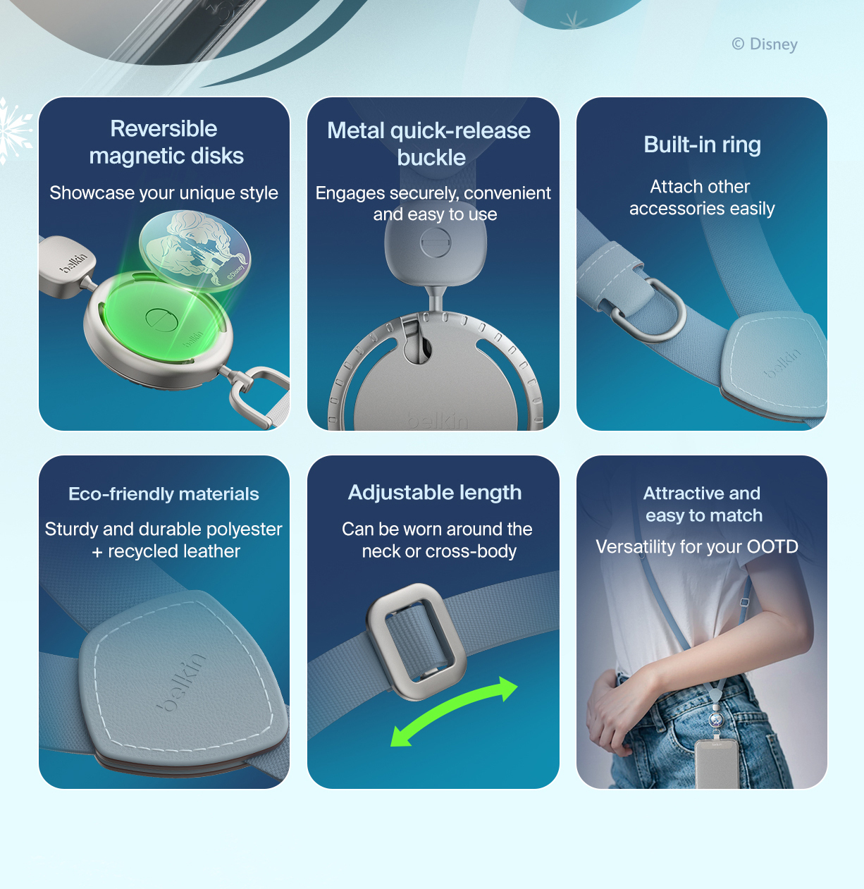 Free up your hands while using the reversible & replaceable magnetic plates to customize your own strap whenever you like. First-of-its-kind buckle design to quickly attach and remove the phone strap.