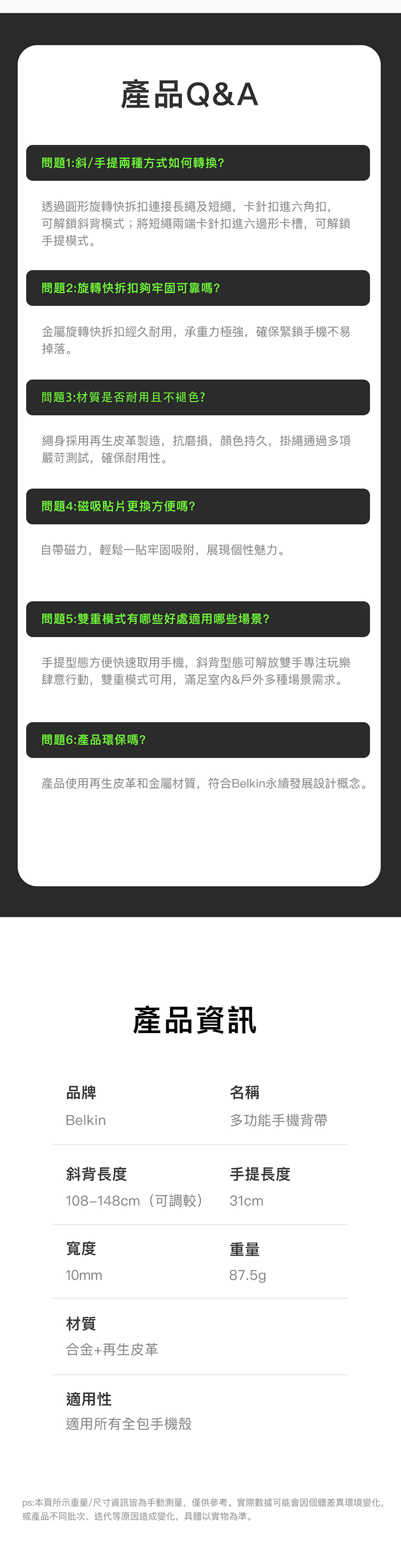 • 採用再生皮革製成的雙面背帶,兼顧環保與時尚外觀。