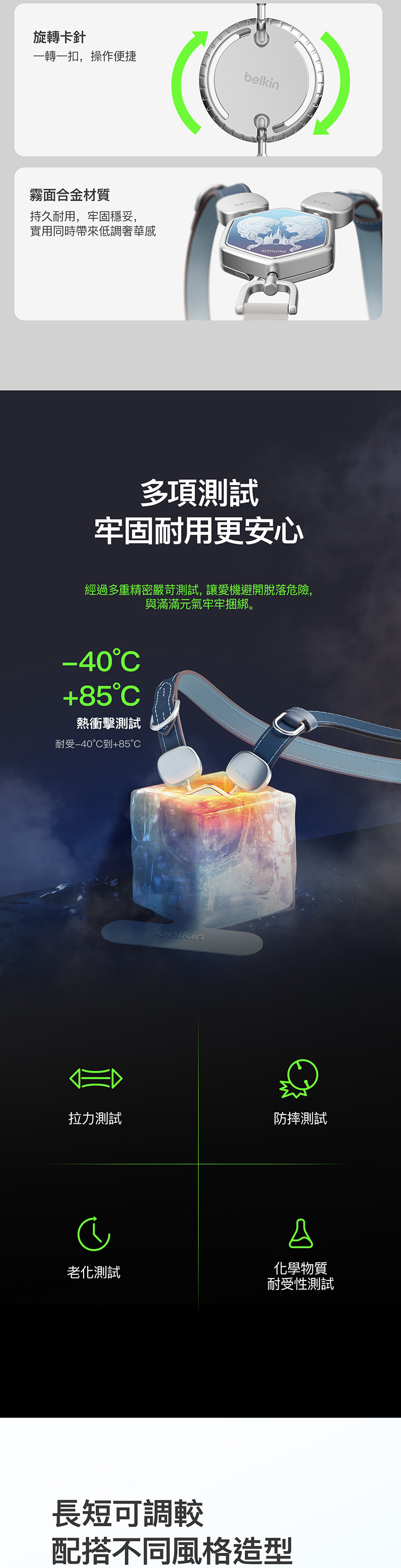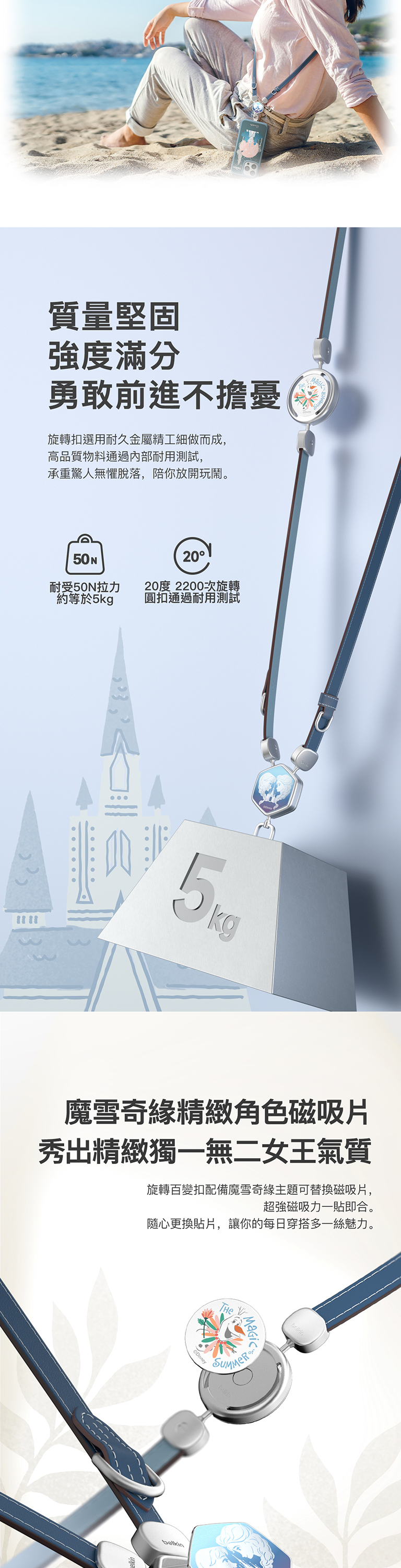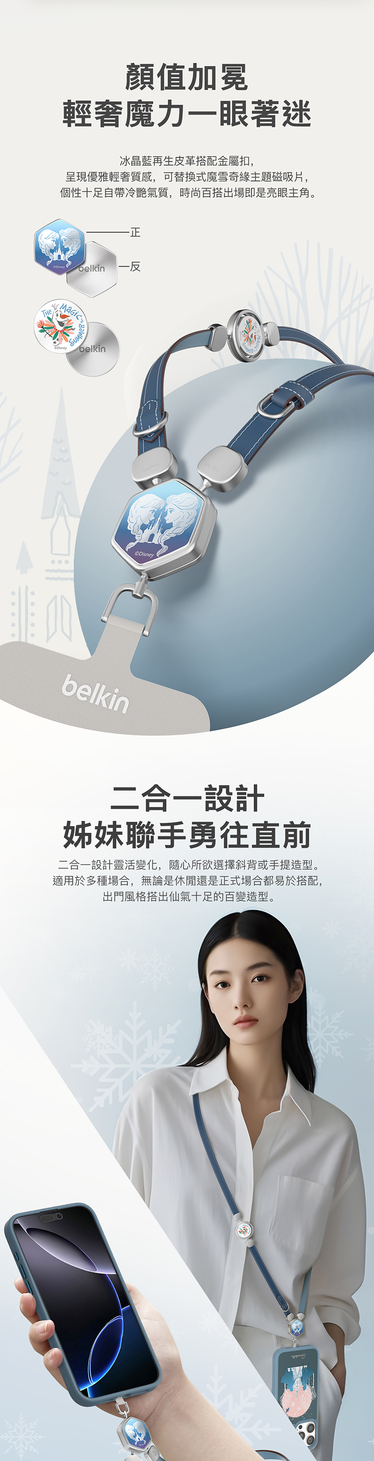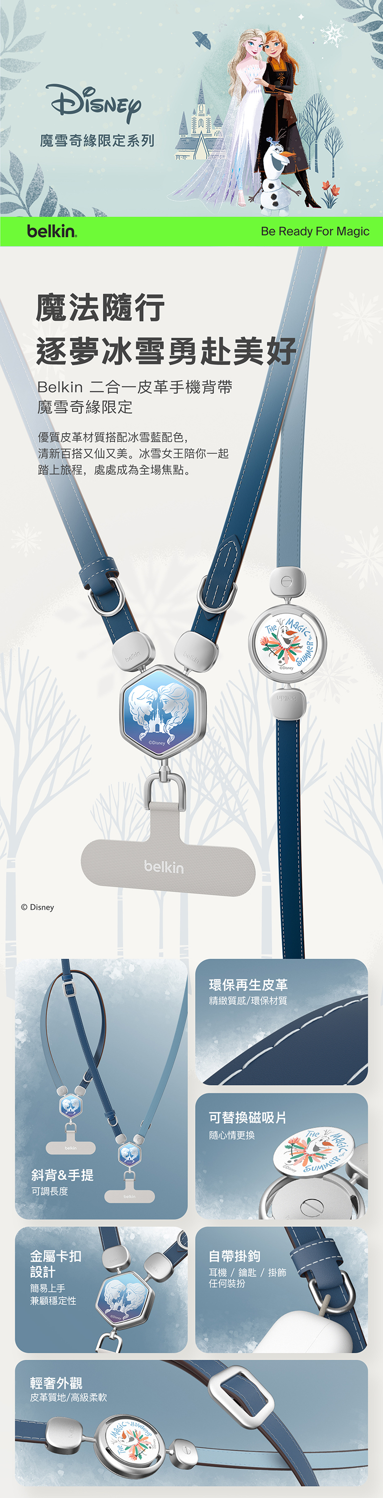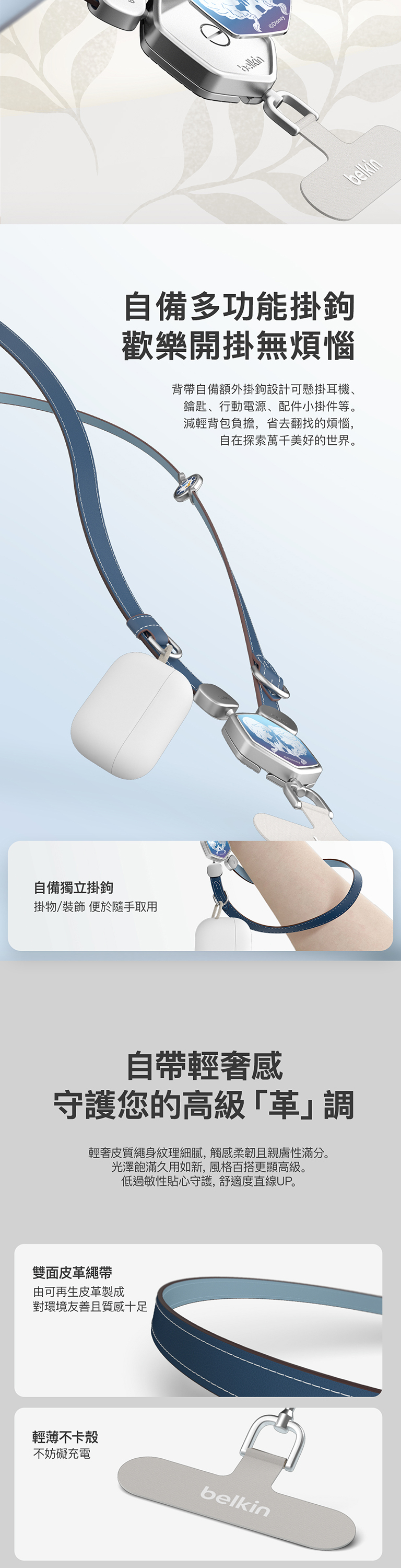 全新迪士尼系列2合1多功能皮革手機掛繩,首創獨特扣環設計,可以隨意更換角色磁吸片,自行定義專屬於您用的肩帶,解放雙手同時秀出自我風格。