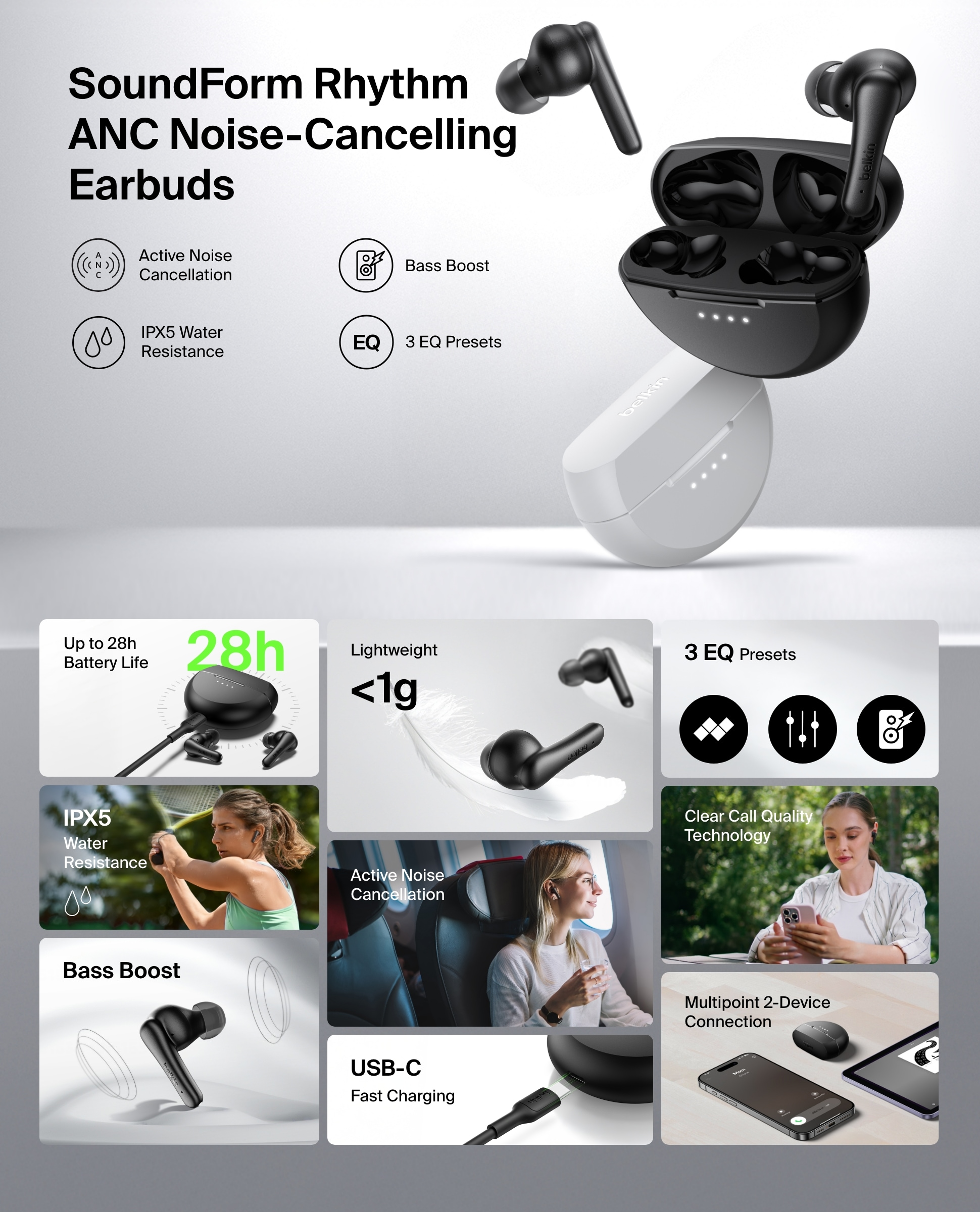 透過主動降噪技術,提升你聆聽體驗。熱門耳機系列最新力作,加入降噪技術等嶄新功能。清晰通話質量技術減少背景噪音,多點連線則可讓音訊來源無縫切換。提供 8 小時連續播放時間,搭配充電盒更可額外提供 20 小時續航力。