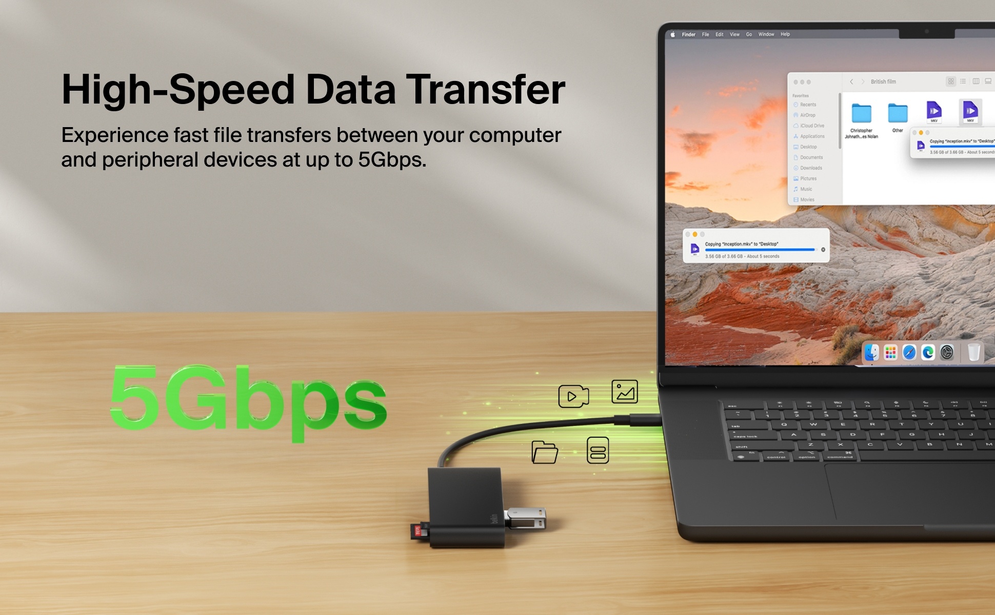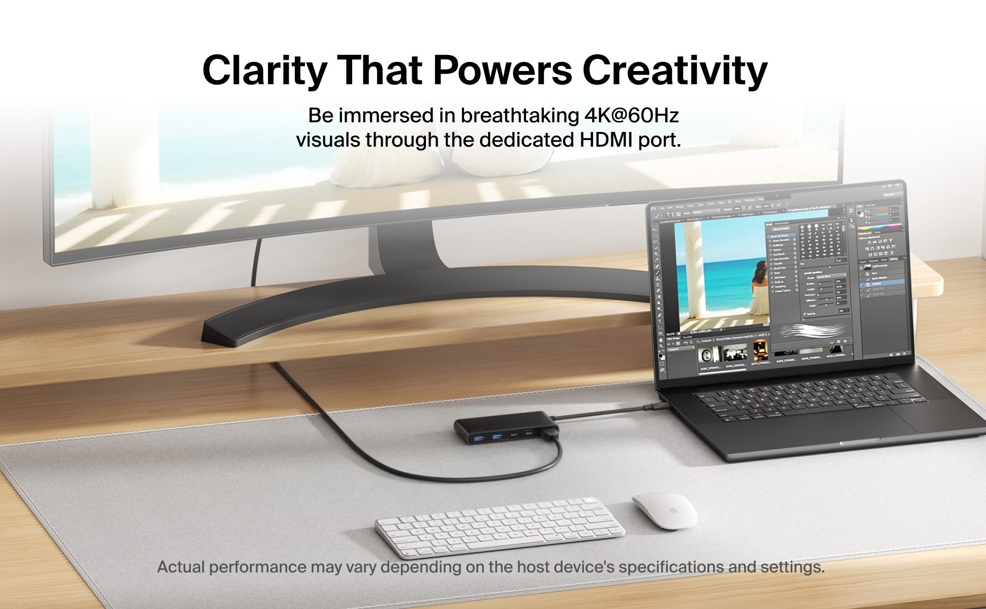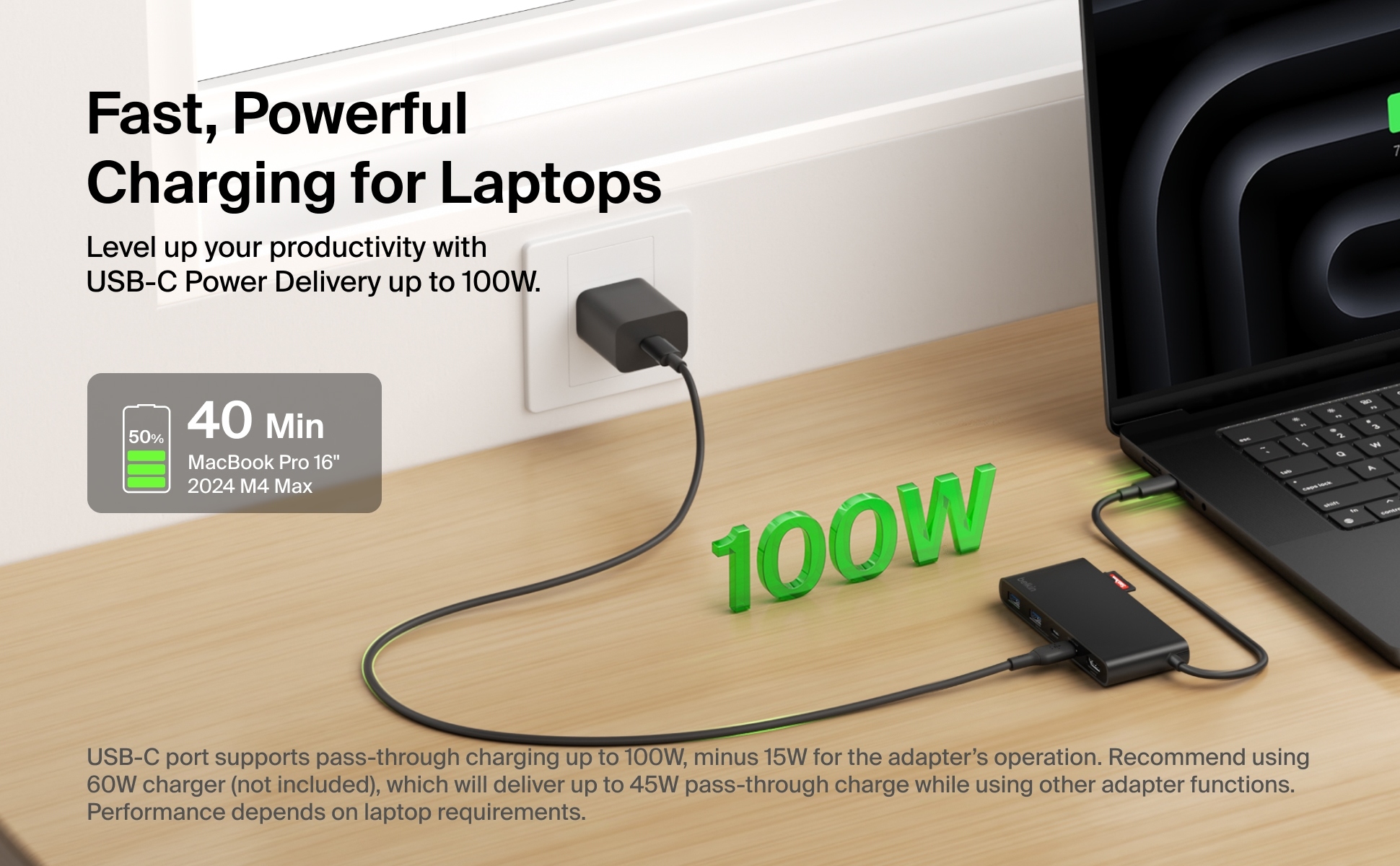 這款 USB-C 集線器可即時為筆記型電腦提供額外的 USB-C 與 USB-A 連接埠,輕鬆連接多達 7 個裝置,大幅提升工作效率,是內容創作者及專業人士的理想之選。配備升級版 HDMI 2.0†,為顯示器提供極致清晰的解像度;資料傳輸速度高達 5Gbps,確保資料傳輸迅捷;一個 USB-C 連接埠更支援高達 100W PD,為您的主機裝置快速充電。此外,這款 USB-C 集線器專為行動應用、辦公室或居家環境而設,無論身處何地,都能時刻維持高效無縫的連接體驗。