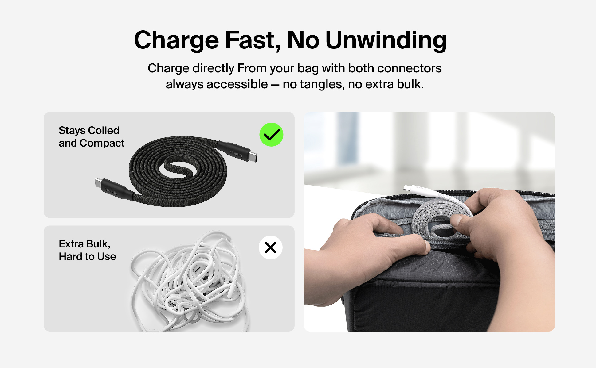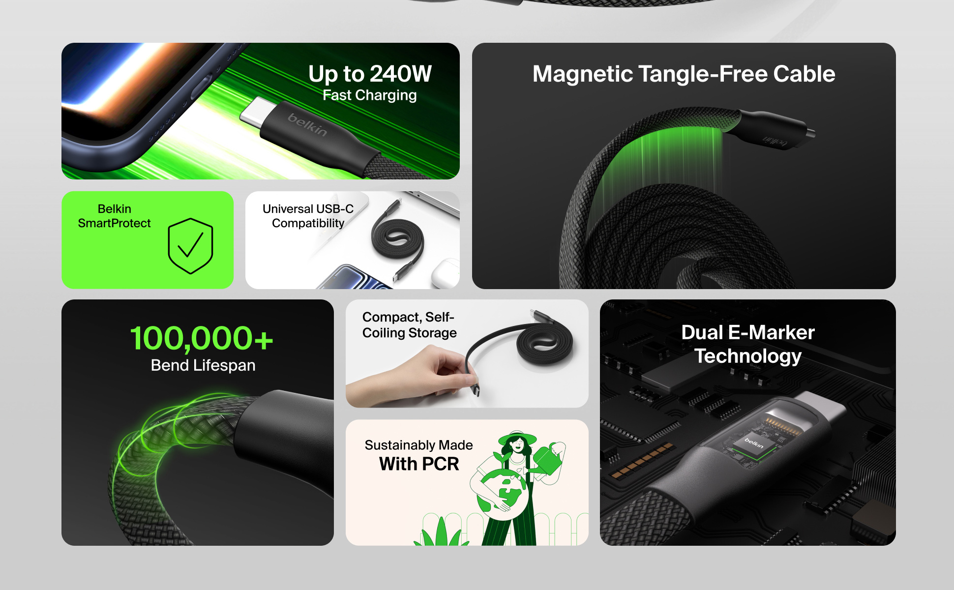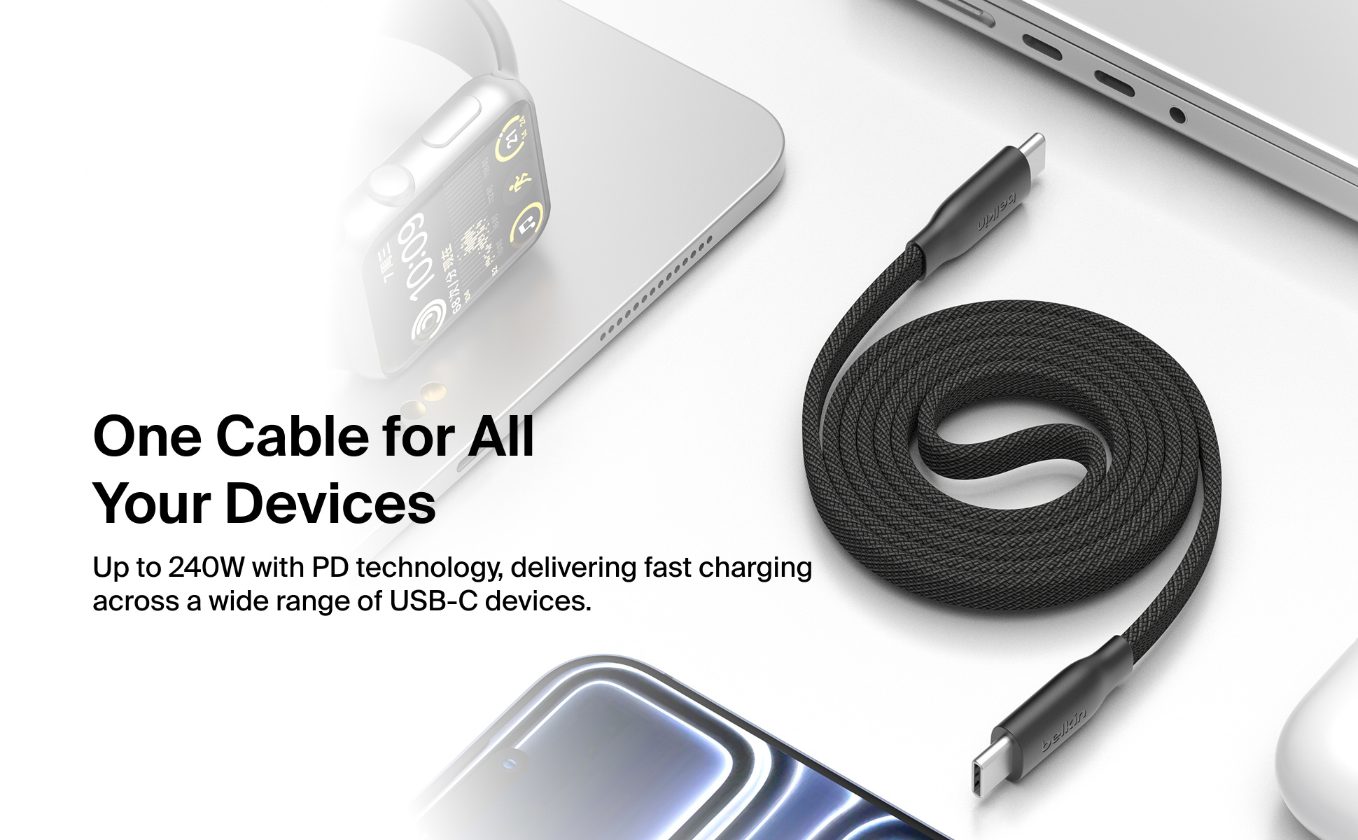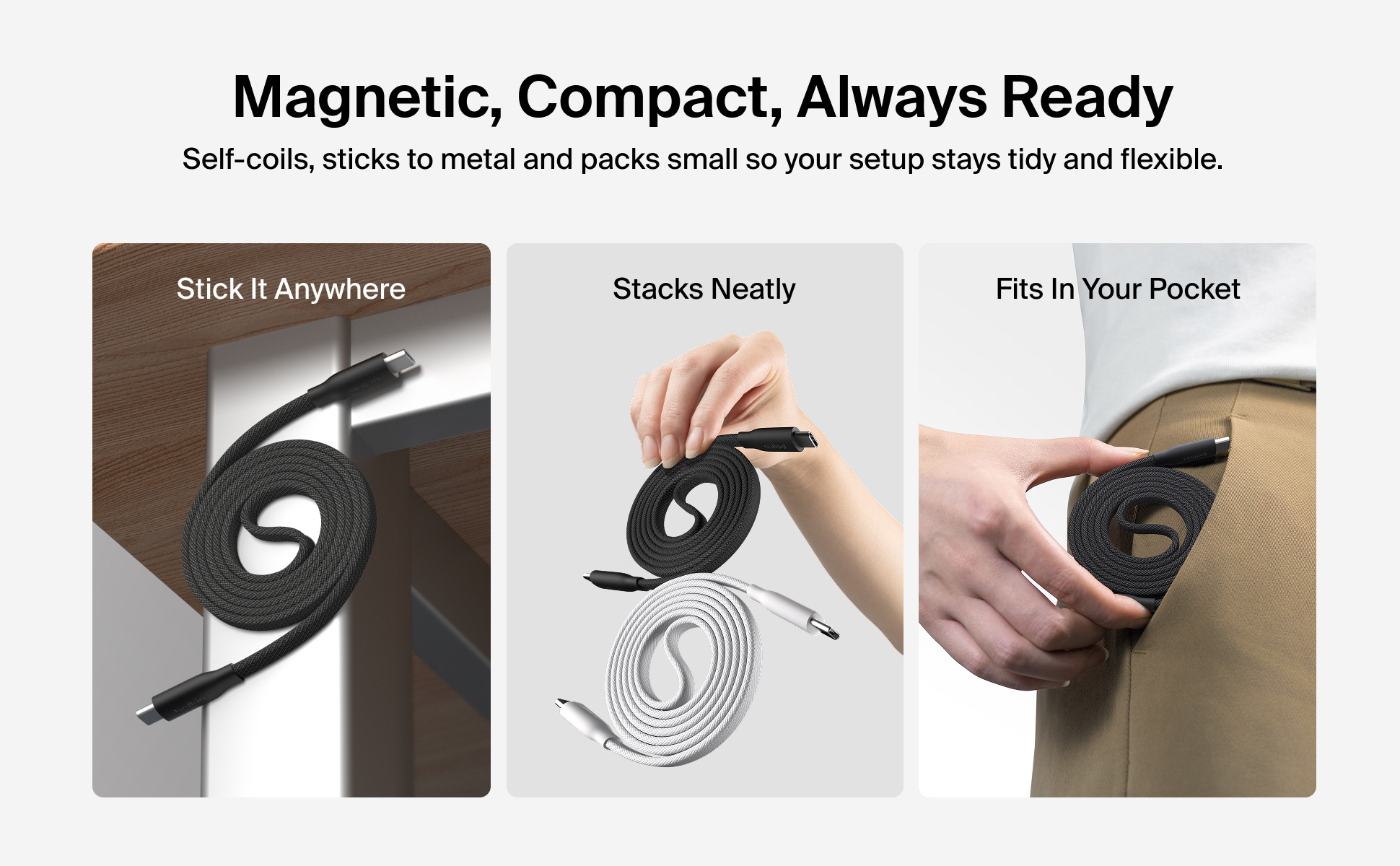 集強大充電效能與智能設計於一身,這款連接線配備磁吸自動捲線功能,可穩固貼附於金屬表面,防纏繞設計讓收納與整理變得更輕鬆。採用創新捲線設計,接口會保持捲圈外,無需解開即可插上使用。 支援 240W PD 快充,兼具卓越耐用性,並通過嚴格測試,可承受超過 100,000 次的彎折‡。