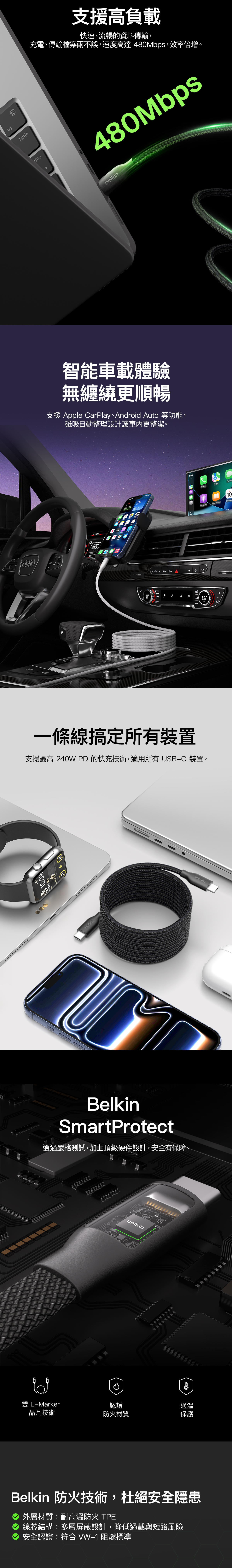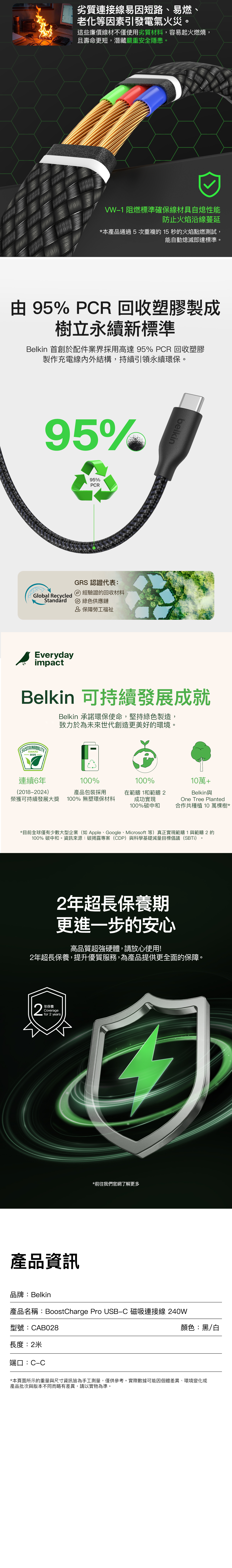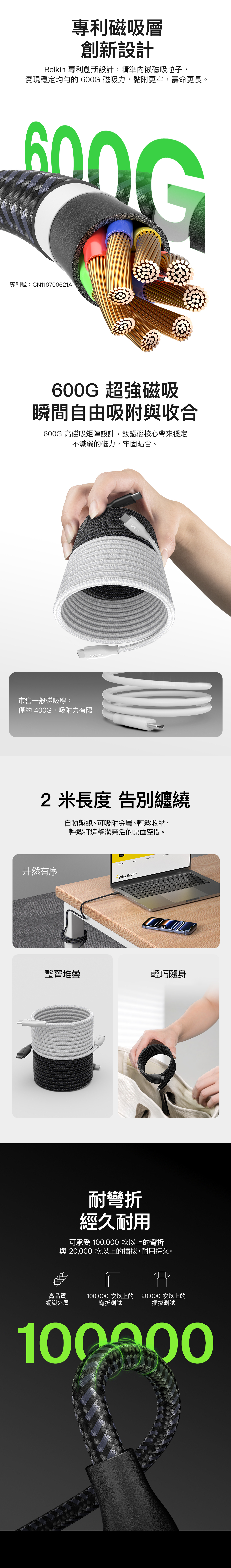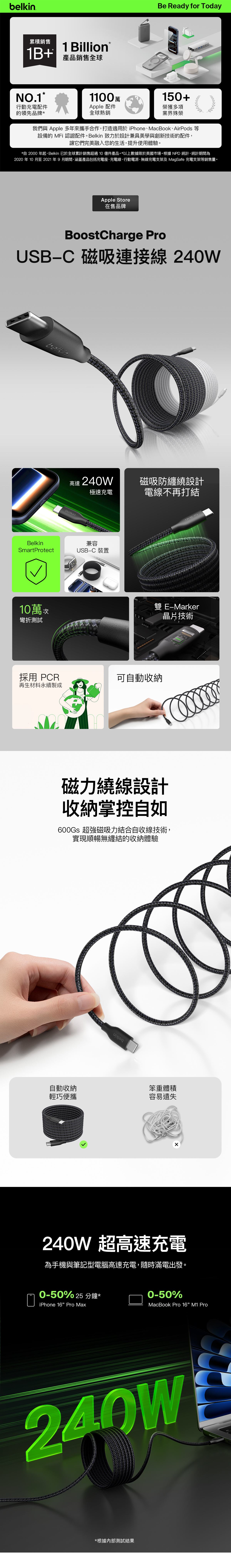 BoostCharge Pro USB-C 磁吸連接線 (240W/2米)