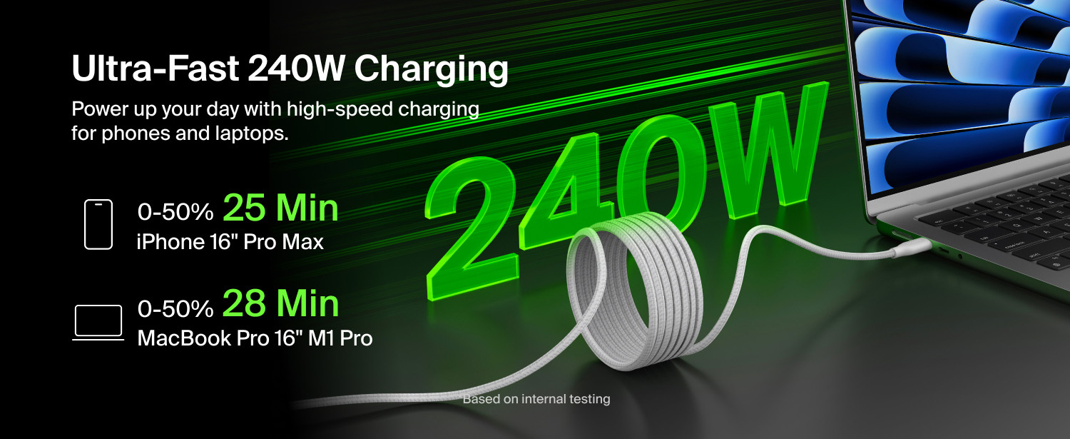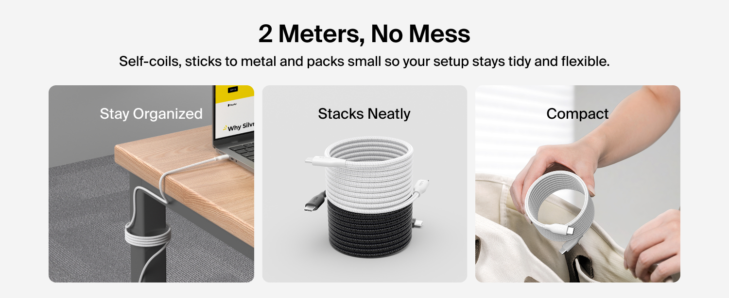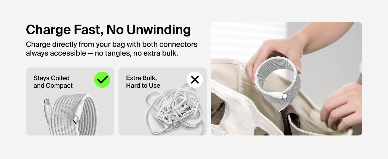 集強大充電效能與智能設計於一身,這款連接線配備磁吸自動捲線功能,可穩固貼附於金屬表面,防纏繞設計讓收納與整理變得更輕鬆。採用創新捲線設計,接口會保持捲圈外,無需解開即可插上使用。 支援 240W PD 快充,兼具卓越耐用性,並通過嚴格測試,可承受超過 100,000 次的彎折‡。