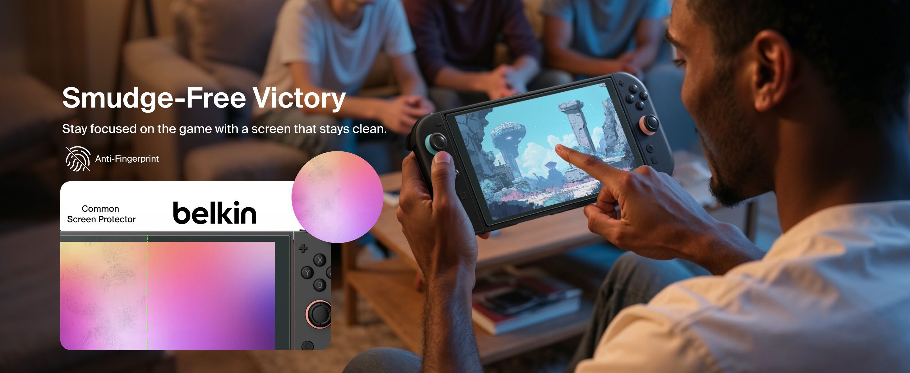 *請勿撕除 Switch 2 原廠螢幕保護膜,請直接將 Belkin 螢幕保護貼貼於其上,確保最佳保護效果與兼容性。
