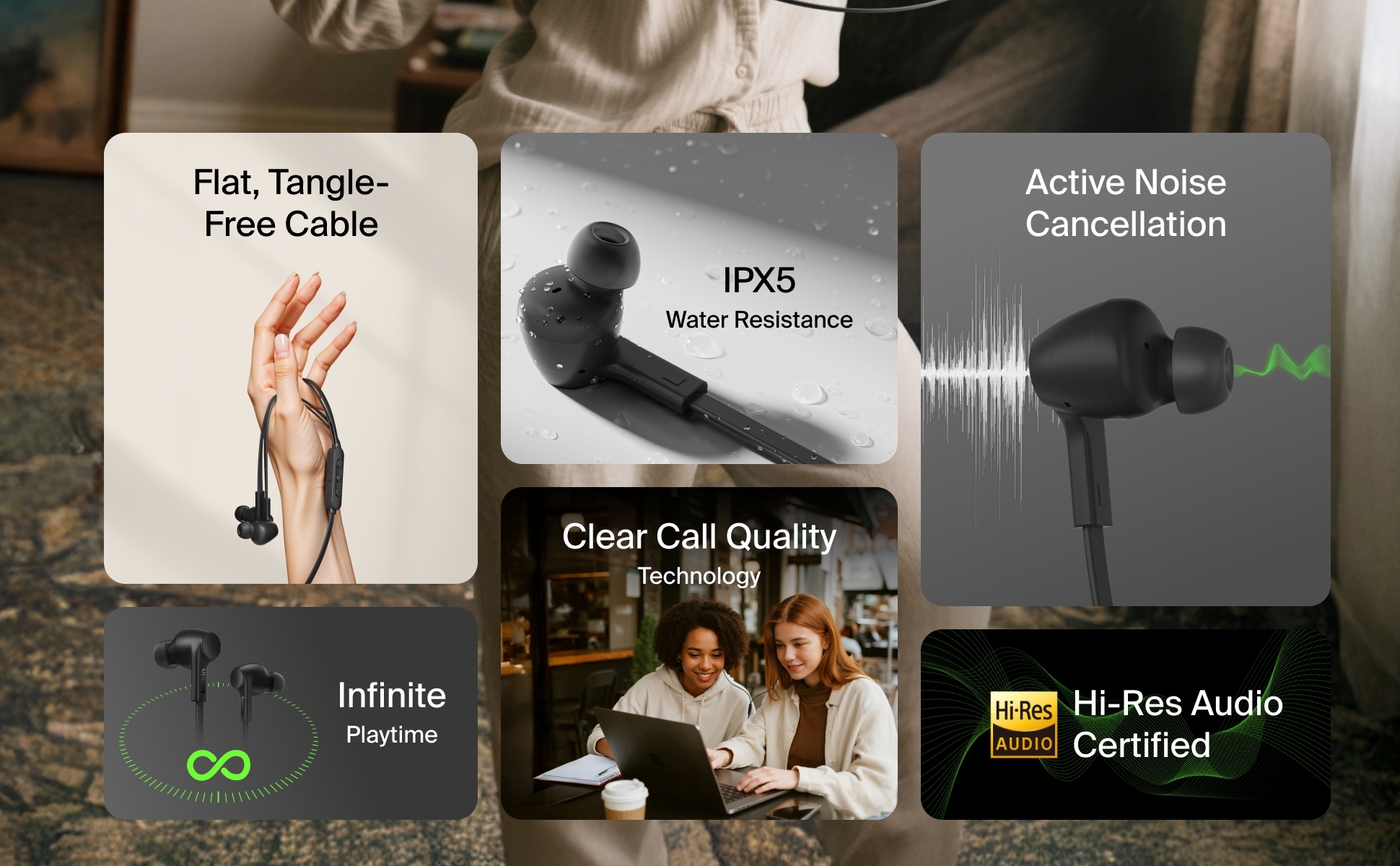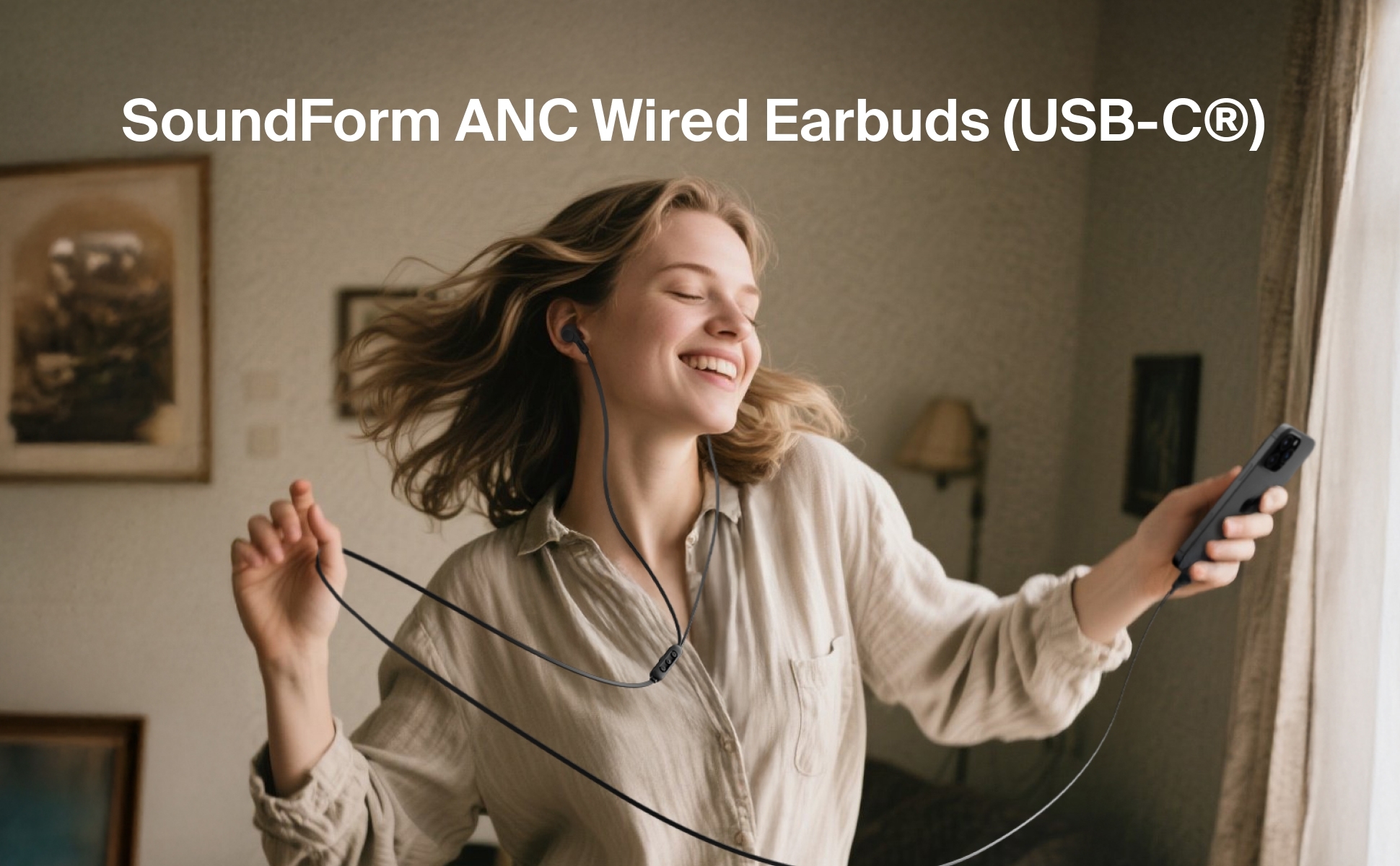 這款簡約復古的 USB-C 有線耳機搭載主動降噪技術,帶來高品質的沉浸式音效與舒適的配戴體驗。通過 Hi-Res Audio 認證,並配備防纏繞扁平線材,無需充電,隨時隨地享受音樂。