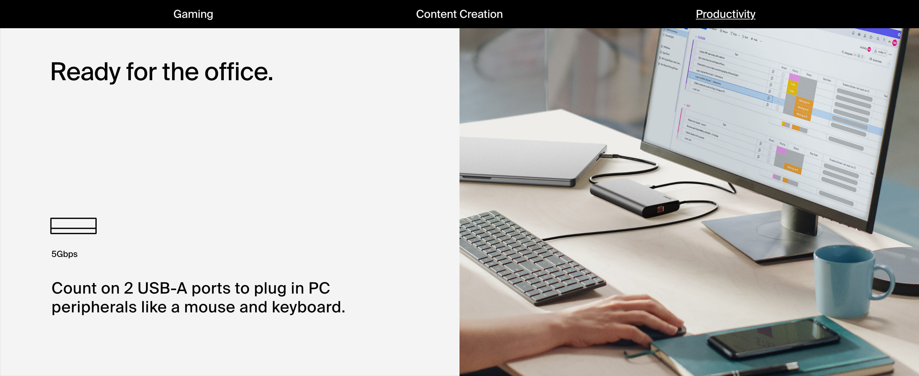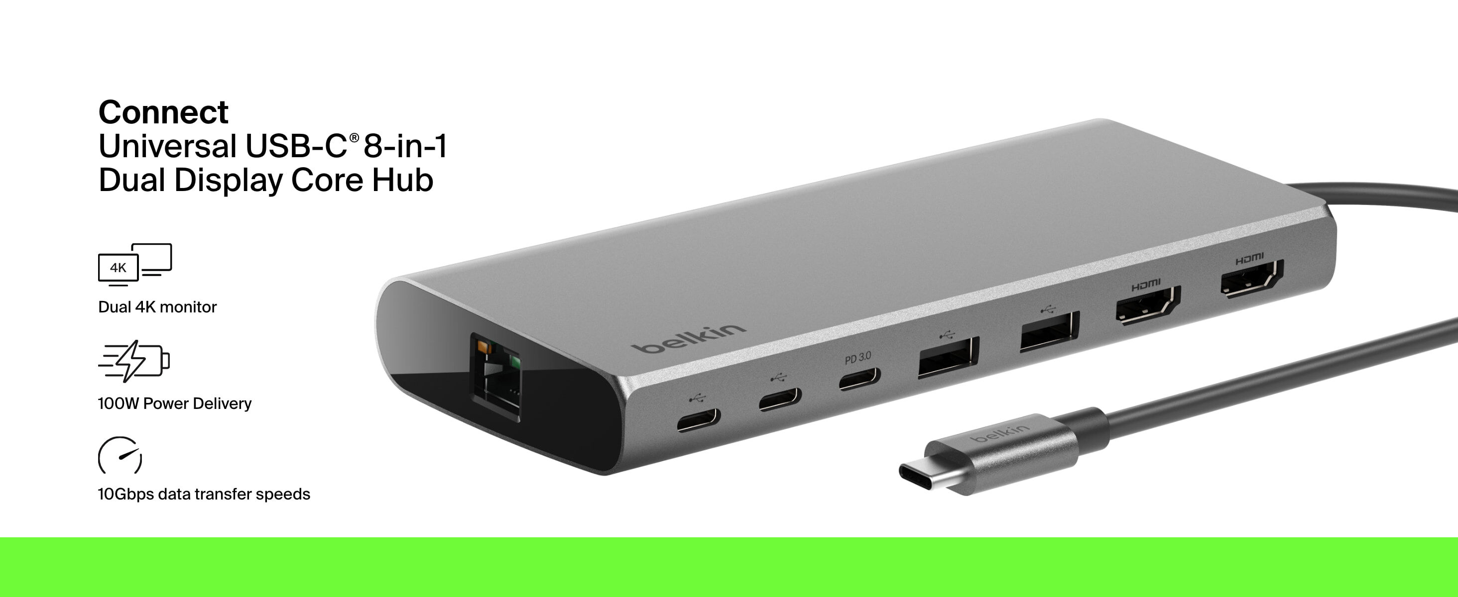 透過單一通用 USB‑C 埠,即可擴展至 8 個連接埠,並支援雙螢幕輸出 (4K 60Hz + 4K 30Hz)。多埠設計讓新款筆電的連接埠減少不再是問題,而 Silicon Motion 技術則提供了更強效能與更高生產力。