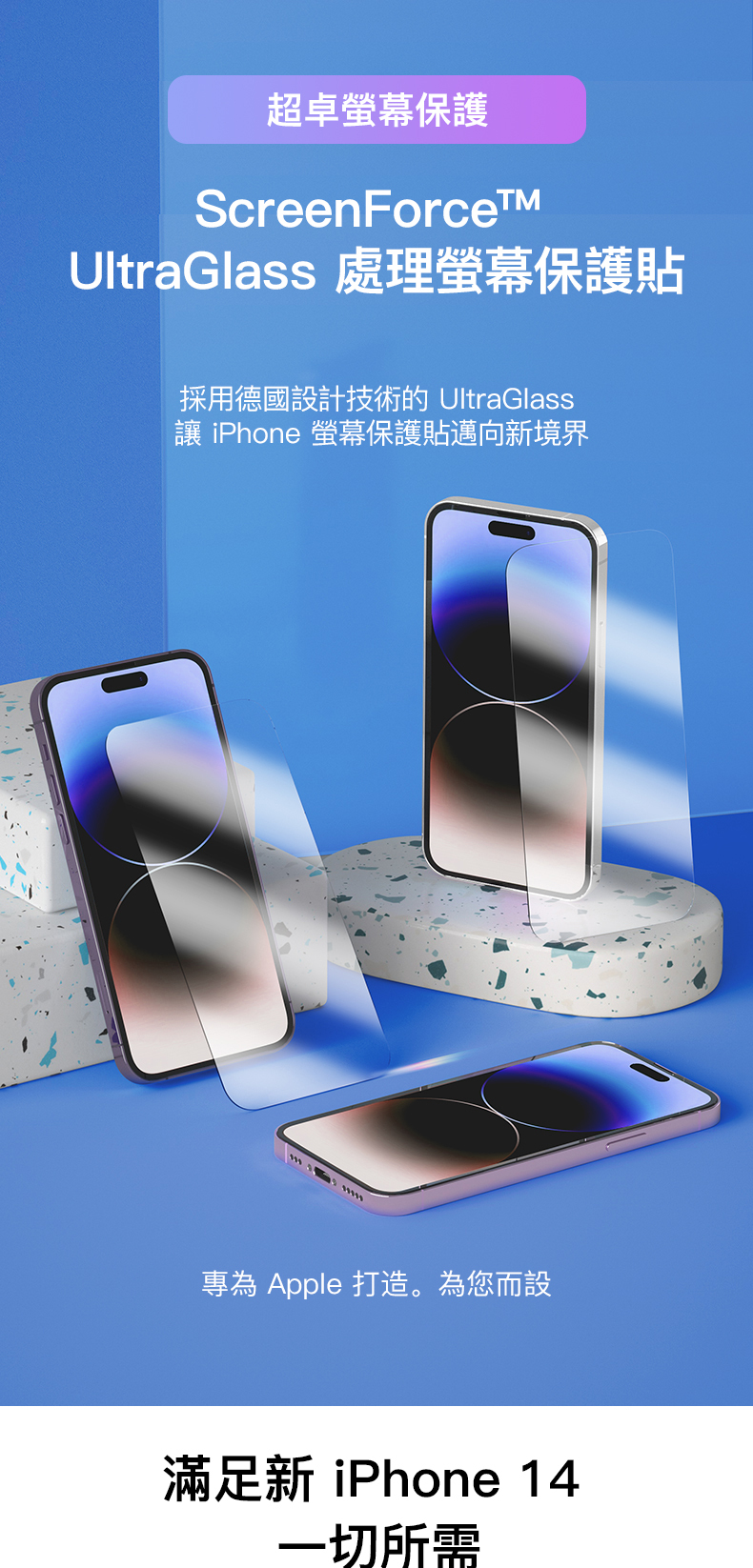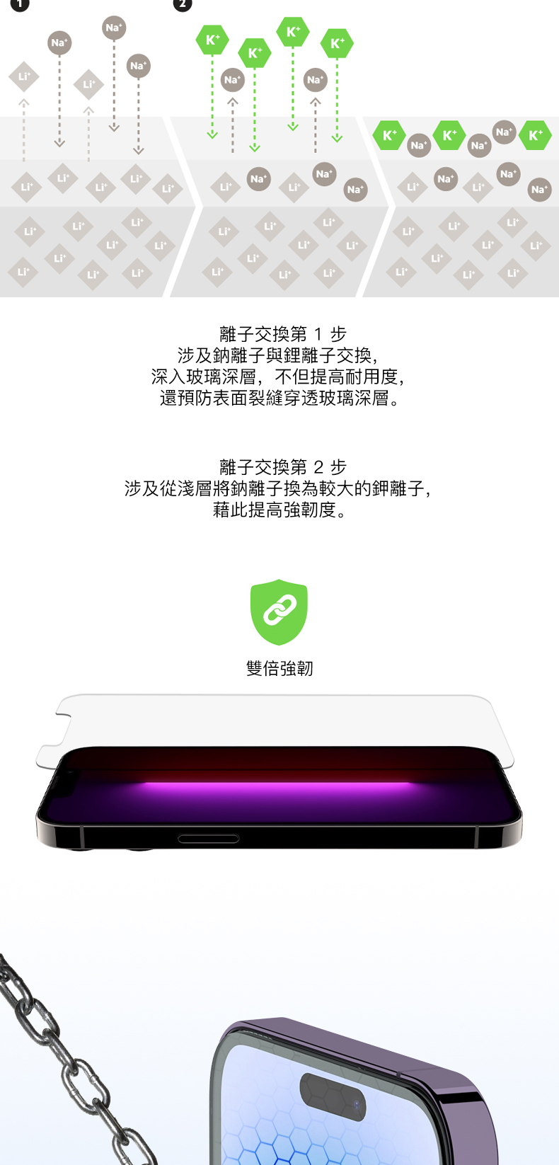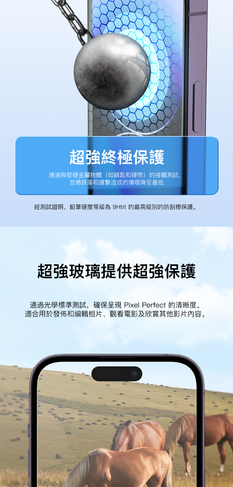 超強超薄UltraGlass 經過科學設計,強度是鋼化玻璃的兩倍,而且不會增加螢幕的厚度。事實上,竟比鋼化玻璃更薄。所以即管放馬過來——摔手機、砸手機、撞手機。UltraGlass 都頂得住。