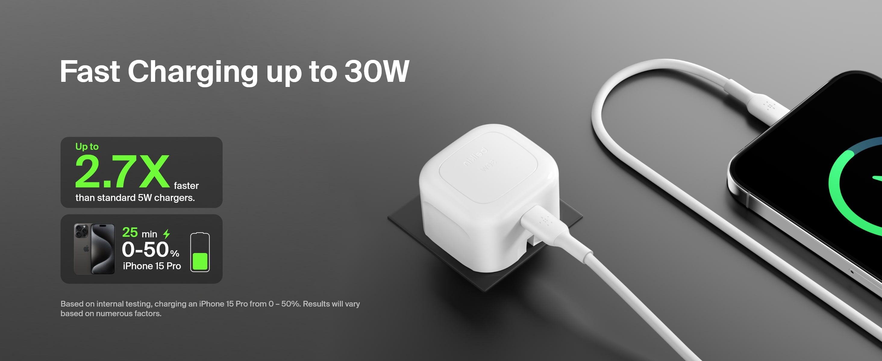 30W PD 電力輸出,兼容 PD 與 PPS 充電標準,實現高效充電