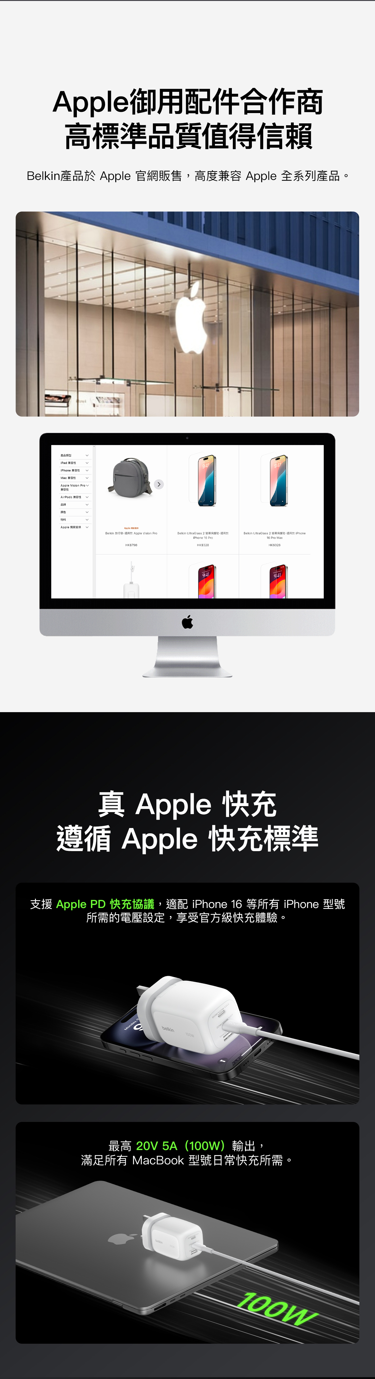 • 兼容 USB-C PD 3.1,支援在 31 分鐘內為 MacBook Pro 16從電量 0% 快速充電至 50%