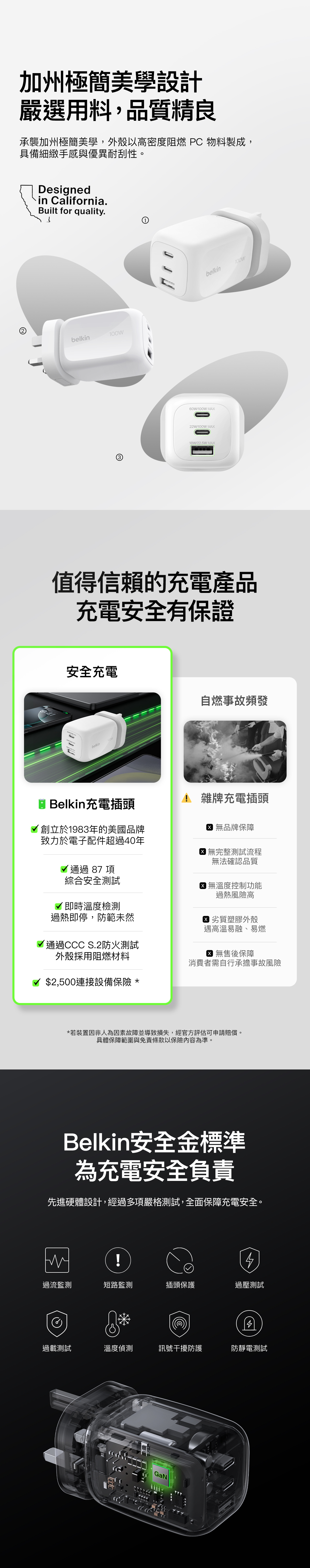 • Belkin SmartProtect 具備超電壓保護功能,並通過 177 項安全測試
