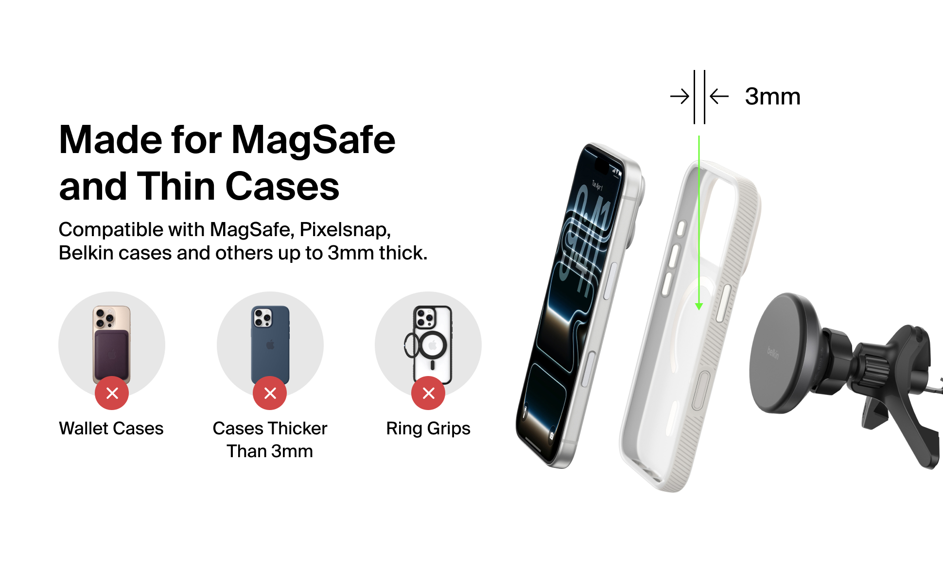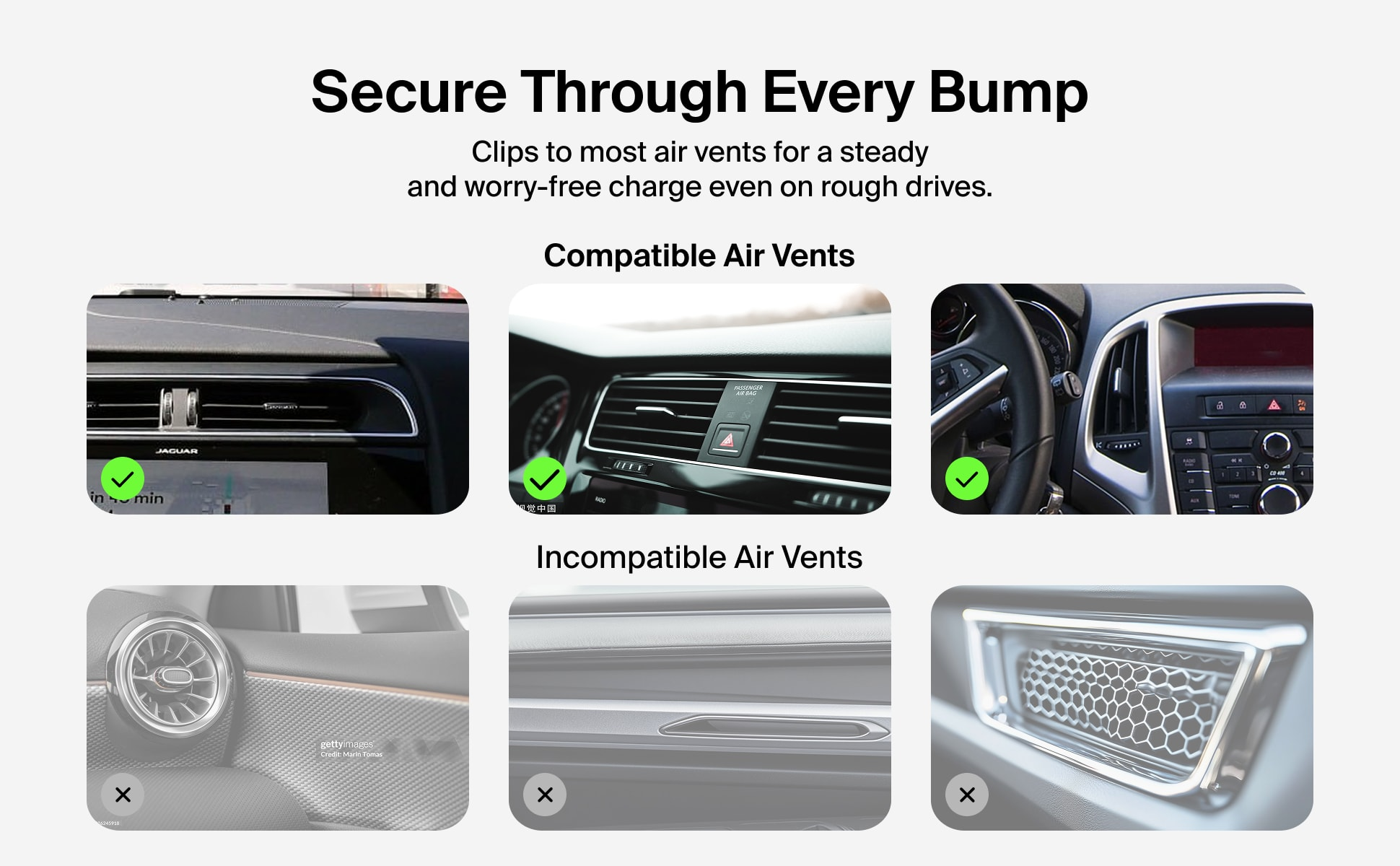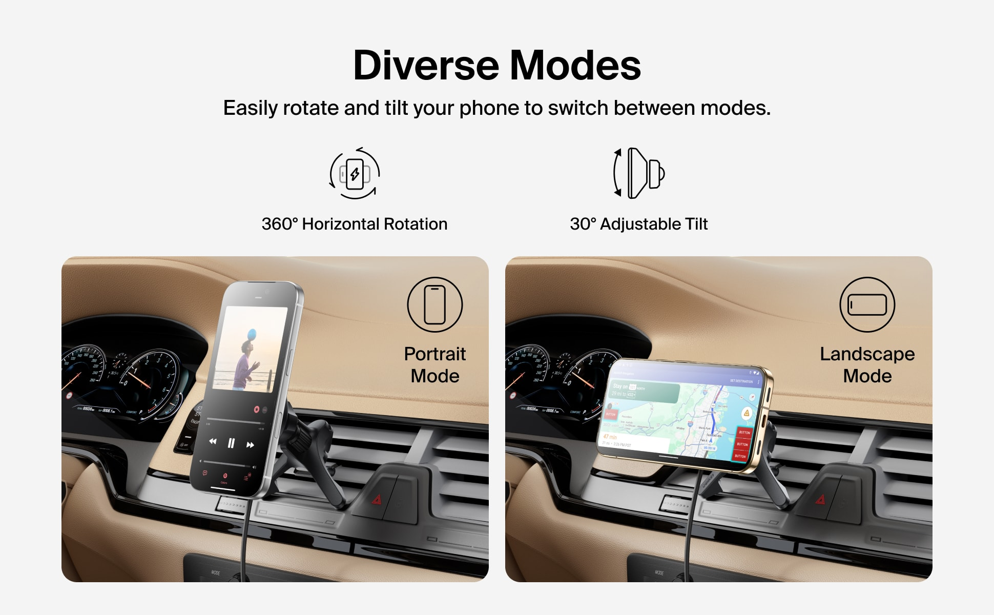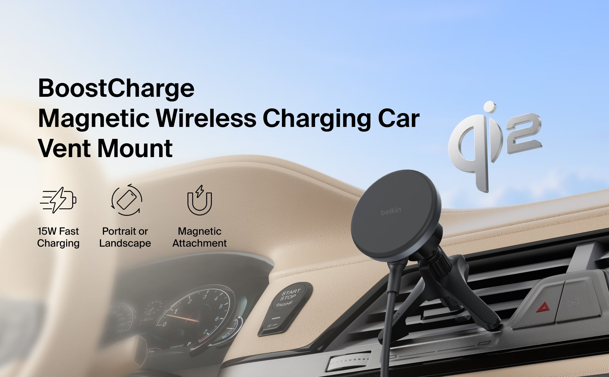 不論長途或短程,這款 Qi2 無線充電器都是您的行車快充戰友,提供高達 15W 的充電效能。這款安全穩固支架結合強勁磁吸技術,為手機提供緊密支撐,橫放或直擺模式隨心切換,讓您路途無憂。隨附 USB-C 轉 USB-C 連接線,插上即可使用,並能輕鬆固定於大部分車款的通風口上。