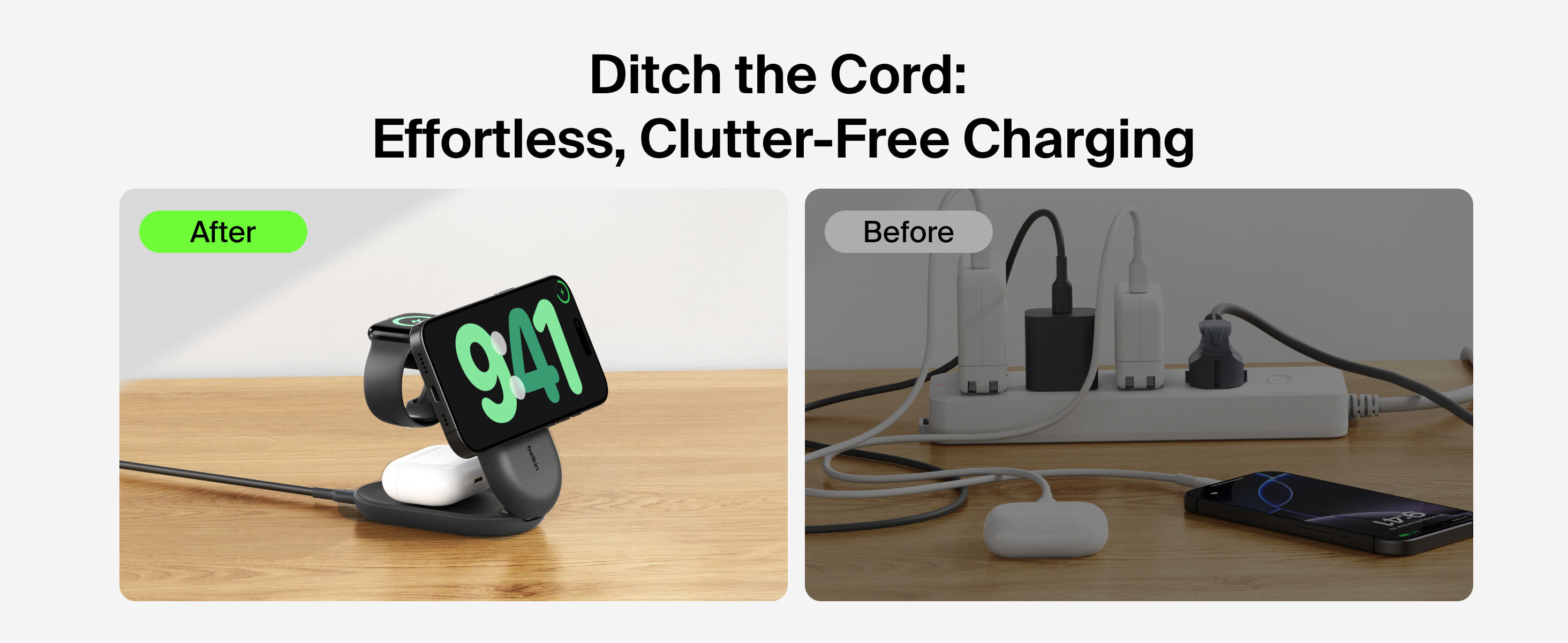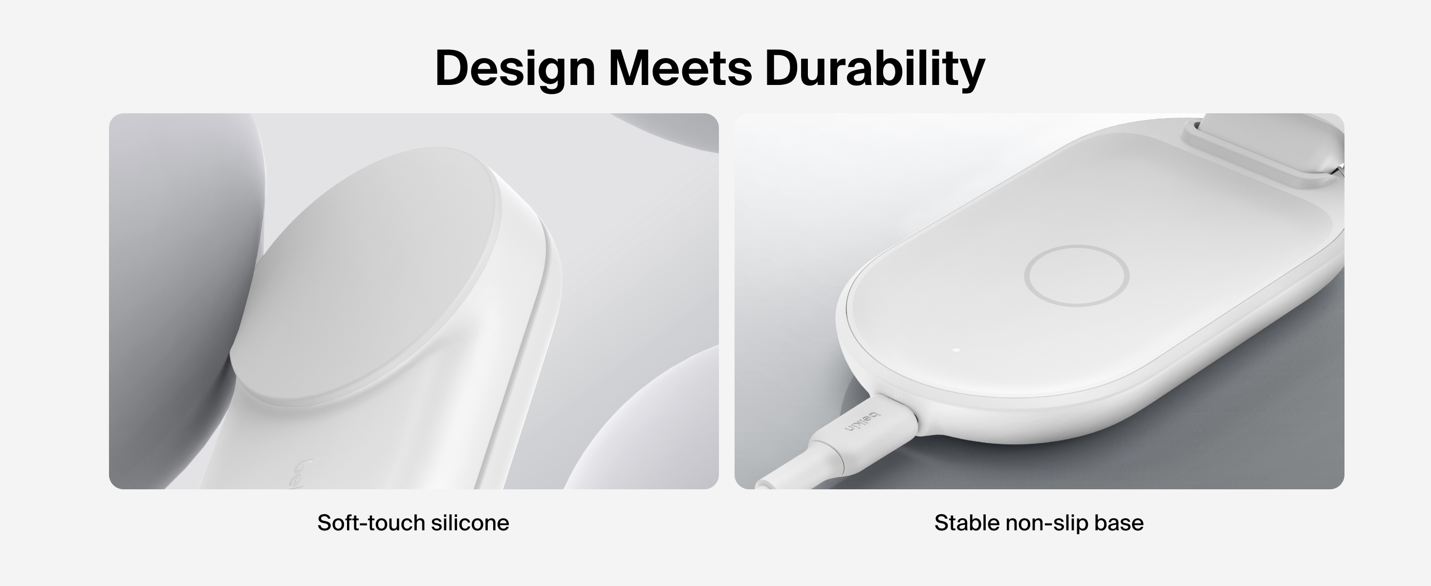 • 磁吸技術,輕鬆一貼即合,搭配防滑底座,確保充電時穩固不移位