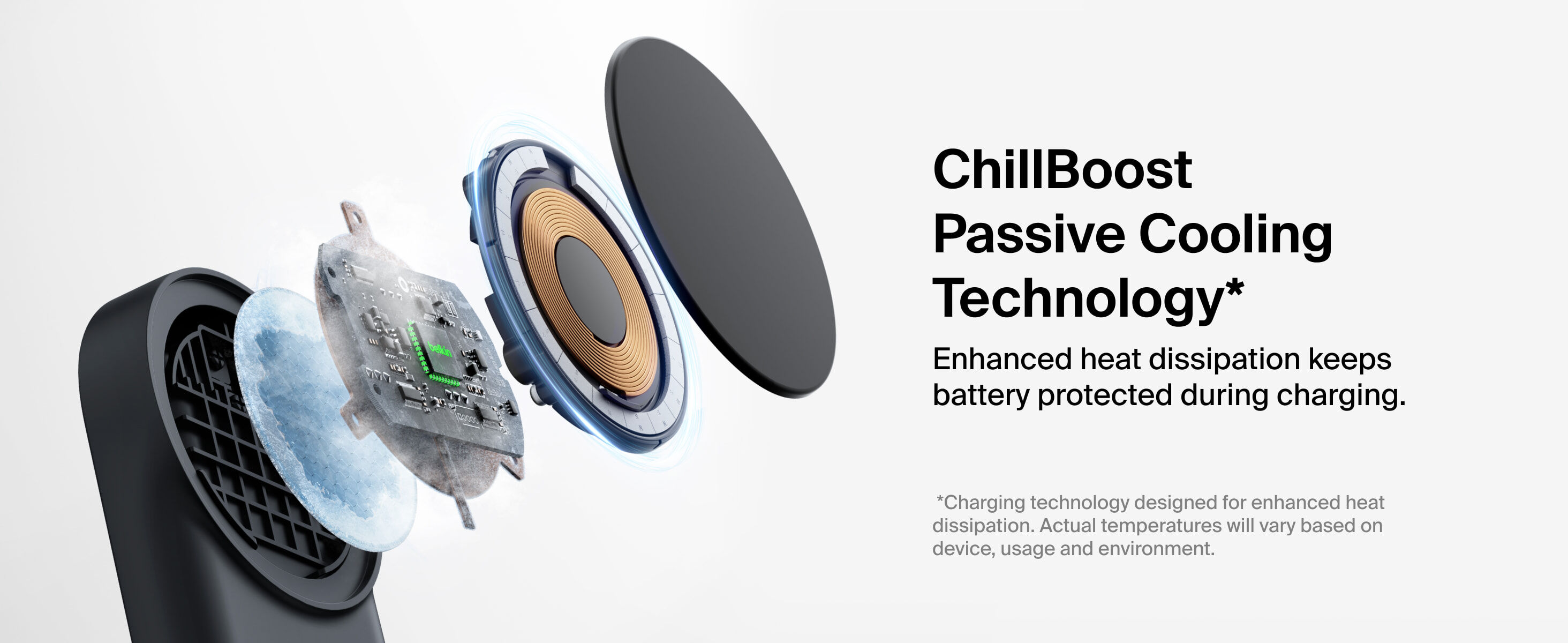 • ChillBoost™ 被動冷卻散熱技術專為降低快速充電時的溫度而設計,有效保護電池壽命††