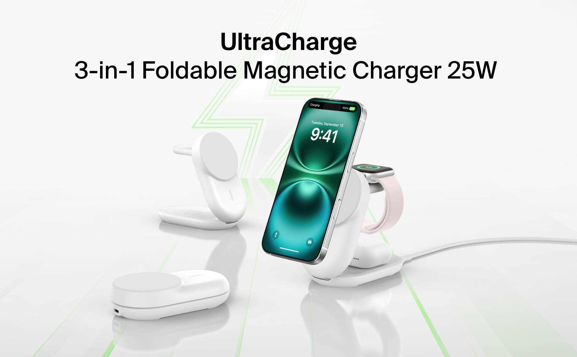 UltraCharge Qi2 3合1 可摺疊磁吸充電器 25W (附送 45W 充電器)
