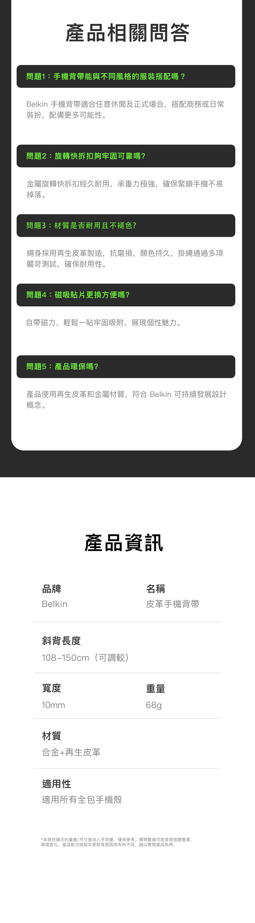 • 採用再生皮革製成的雙面背帶,兼顧環保與時尚外觀。