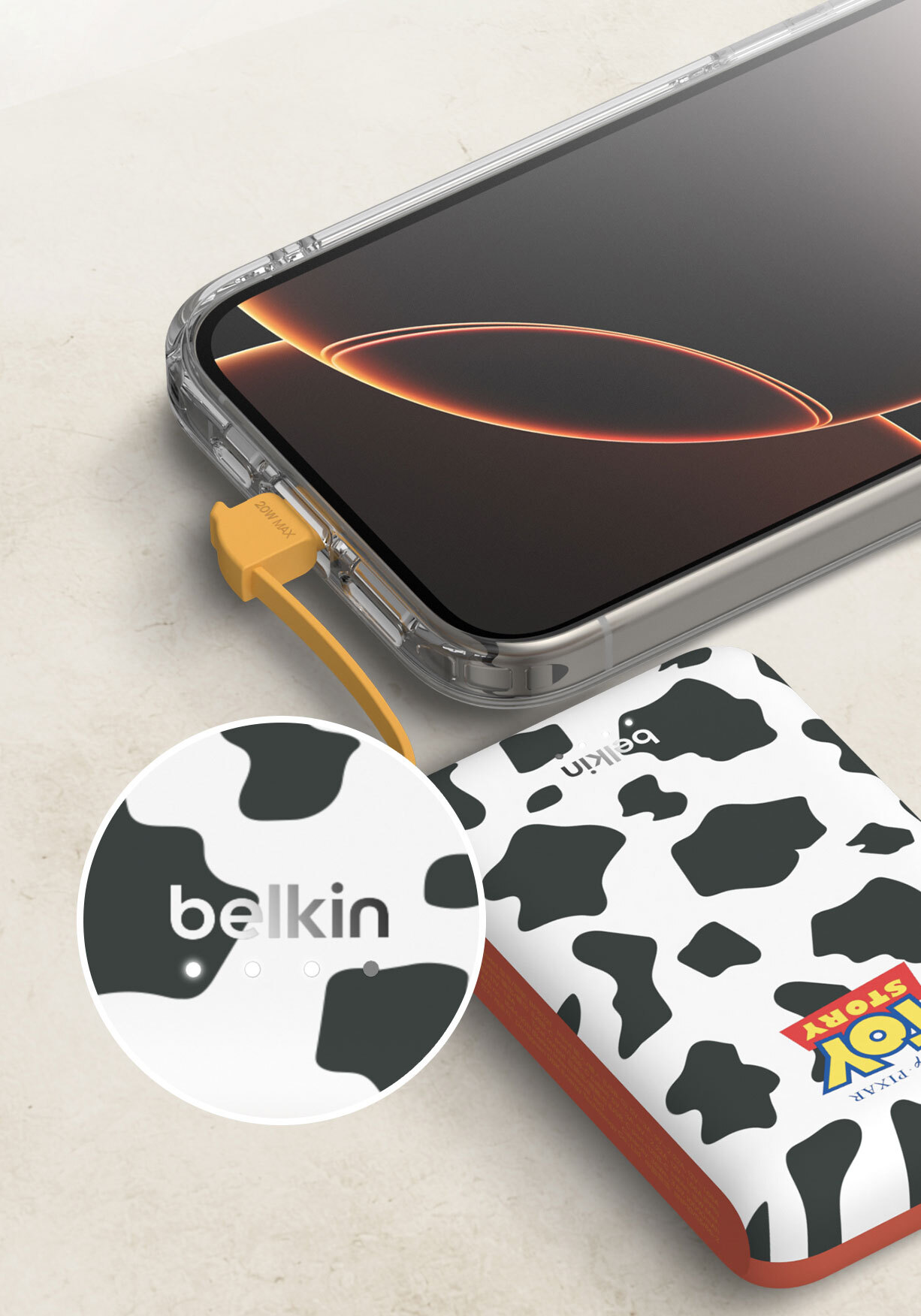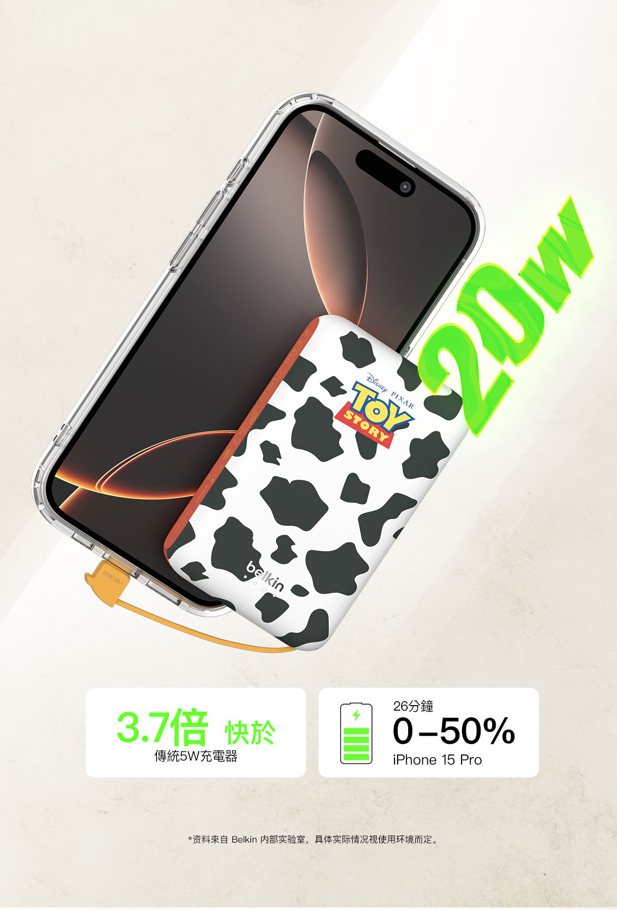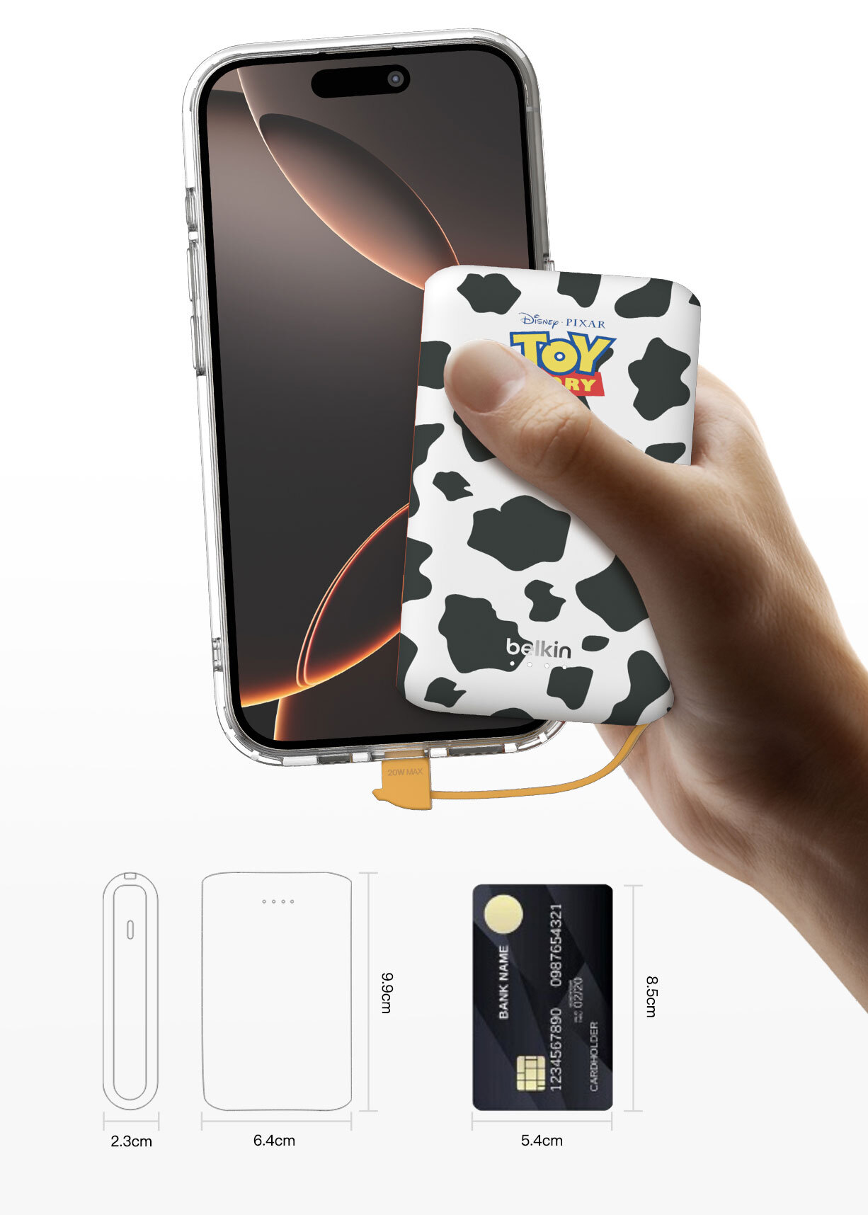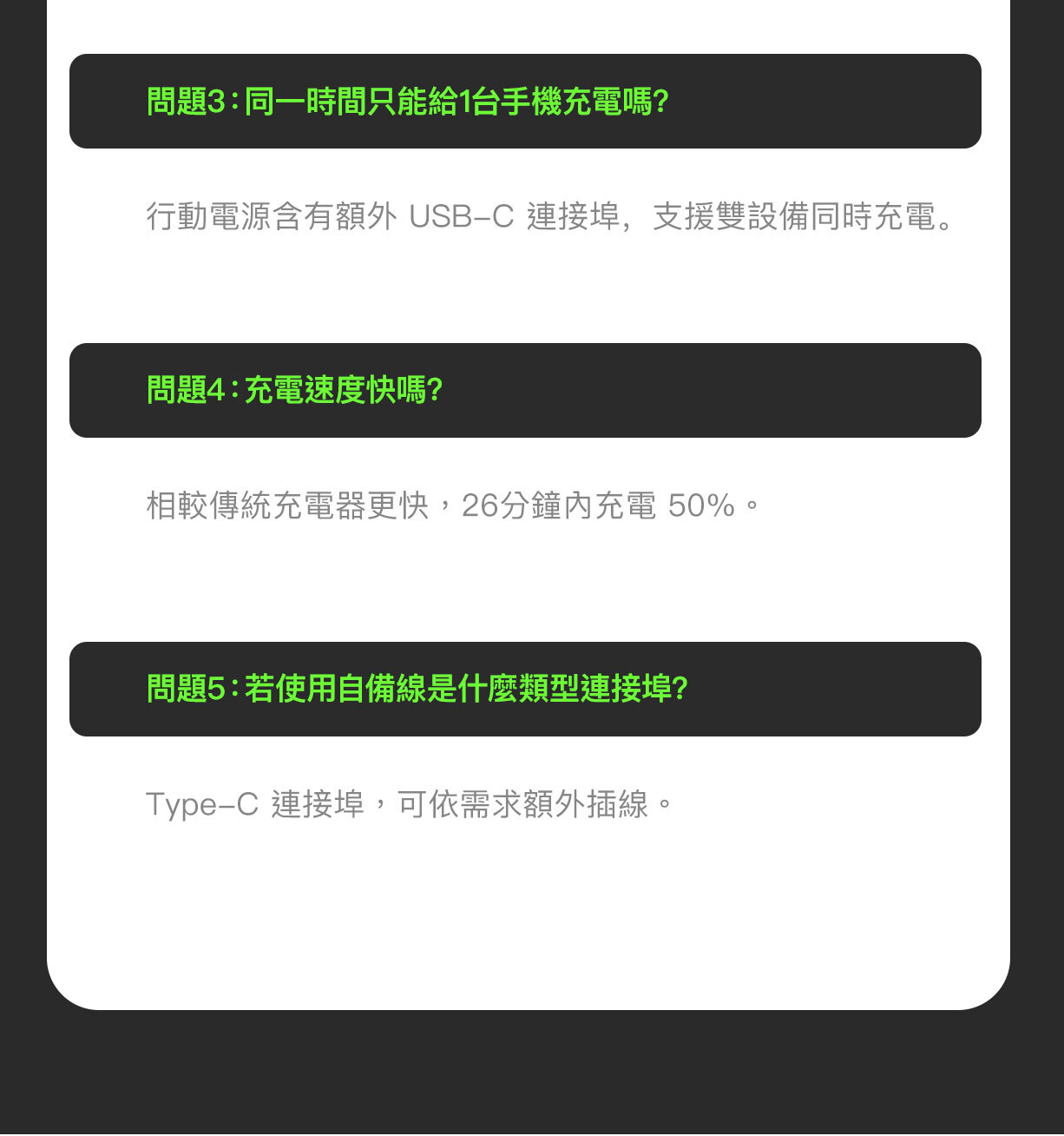 使用我們輕便的 10K§ 行動電源,充電功率可達 20W。其內置 USB-C® 充電線設計方便隨時快速充電,無需額外攜帶連接線。USB-C 端口可同時為第二部裝置充電。
