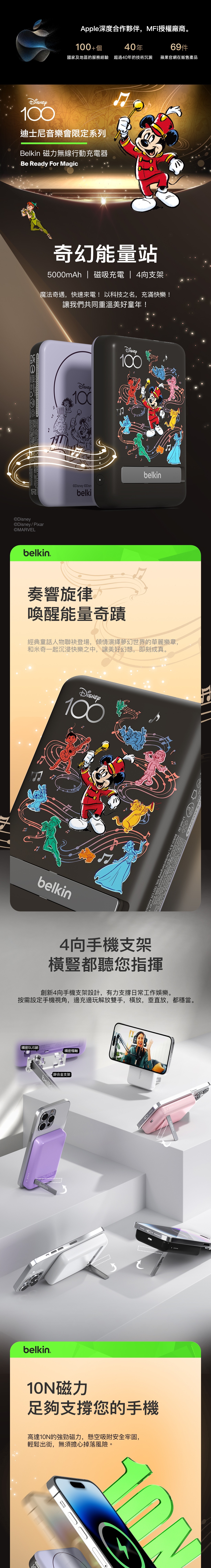 Belkin BoostCharge Disney 100 特別版無線充電器,為您帶來最驚喜的奇妙旅程。造型分別有Forzen ( Elsa), Toy Story (Lotso), Mickey 和迪士尼音樂會版本。