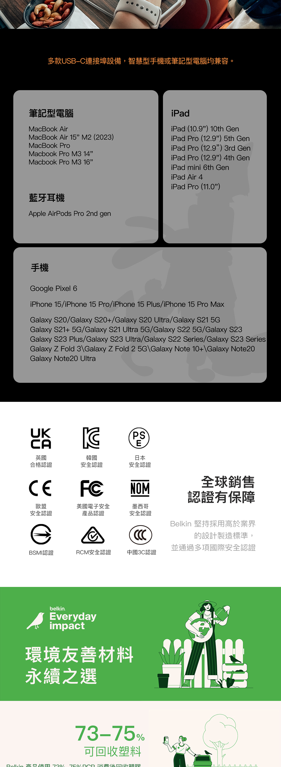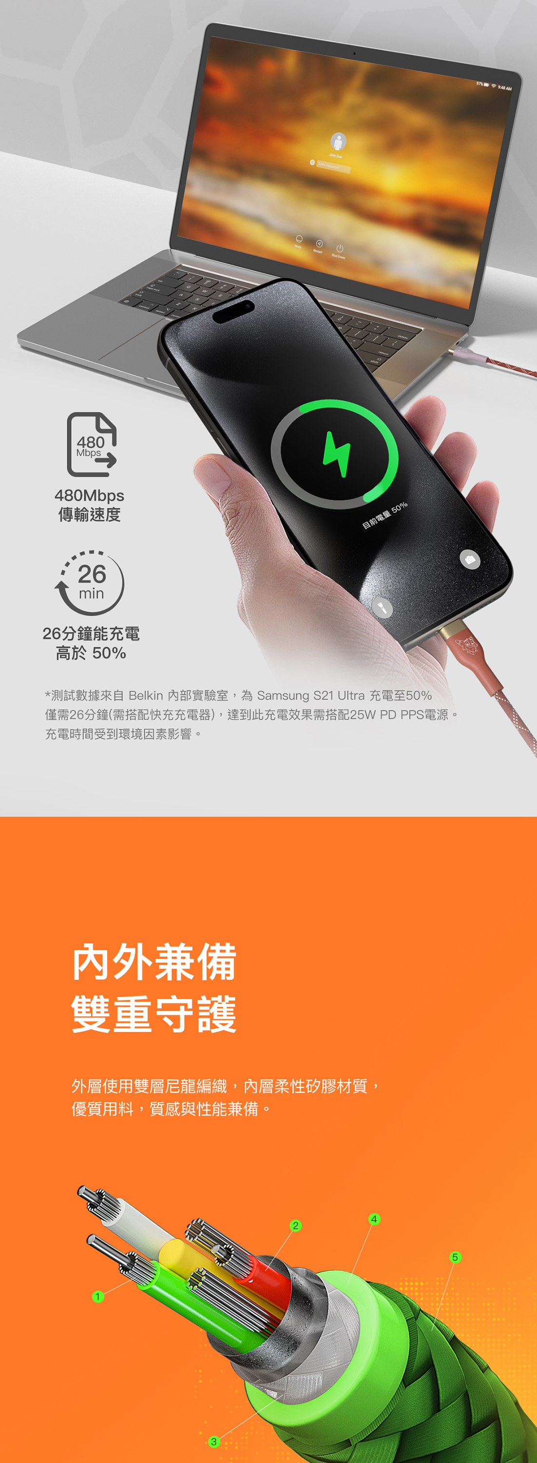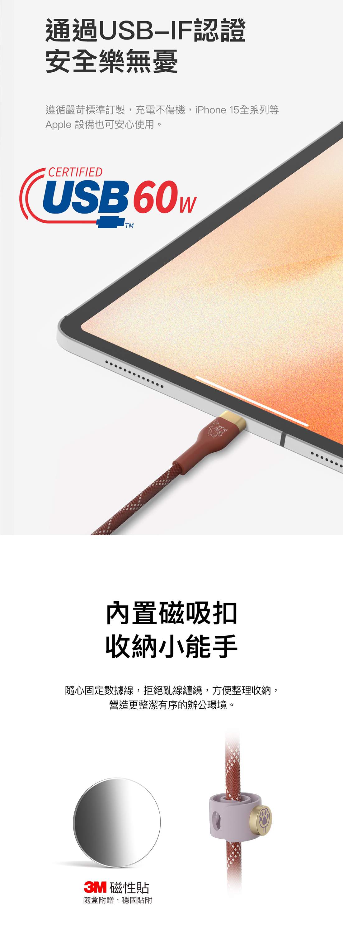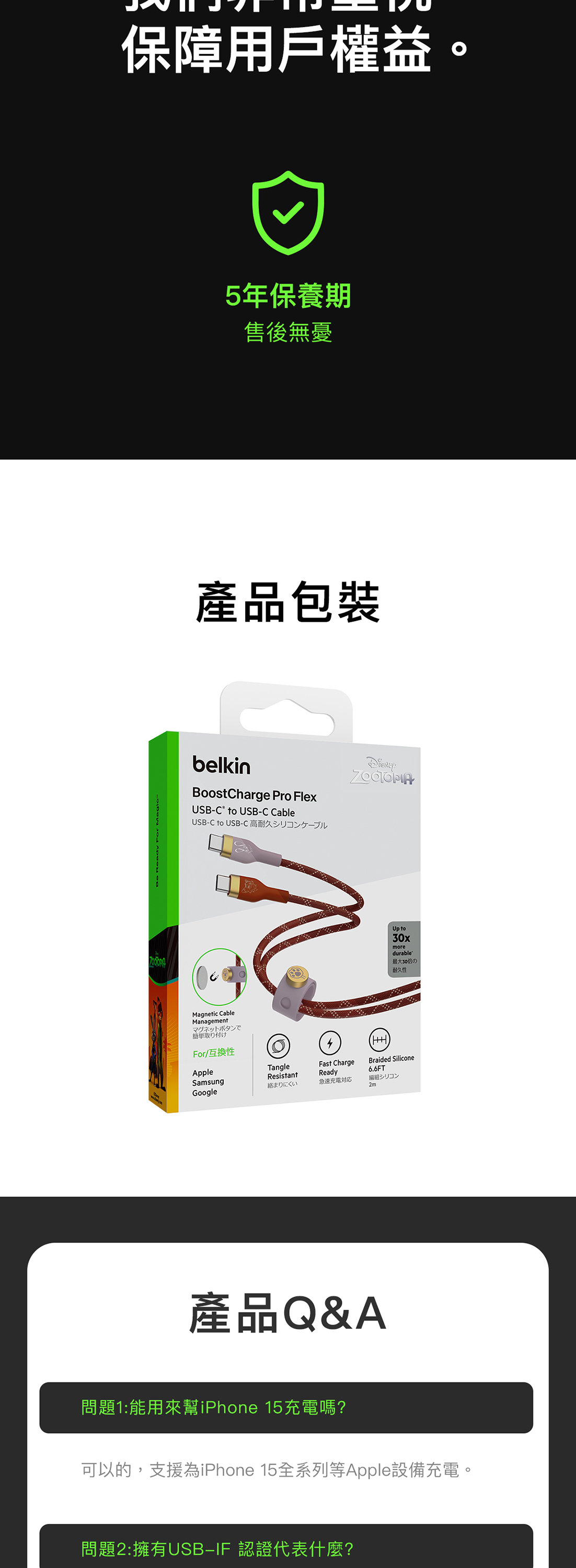 提高充電的耐用性和靈活性。 BoostCharge Pro Flex 矽膠電纜採用雙編織外部,耐用性提高 30 倍。 包括磁性電纜管理系統。 有 3 種款式可供選擇