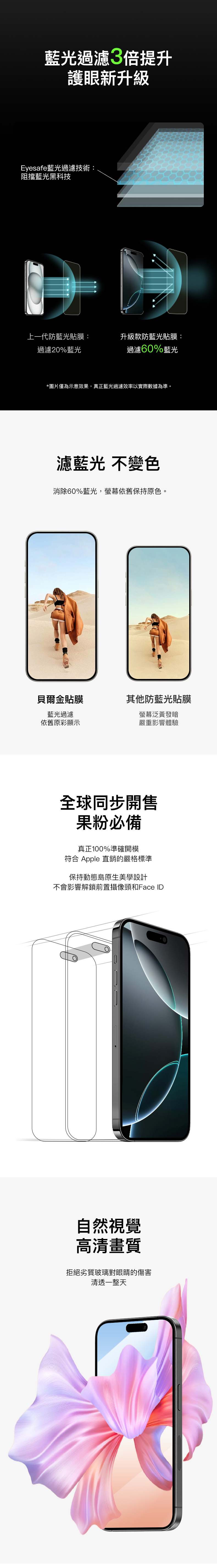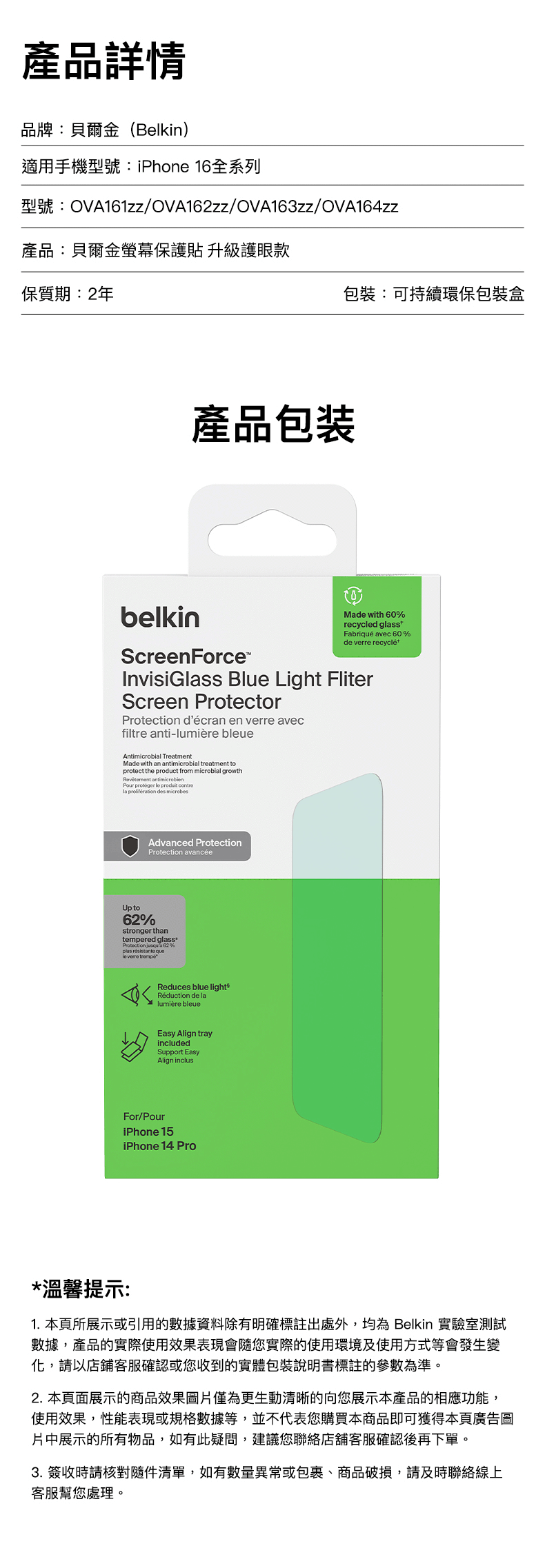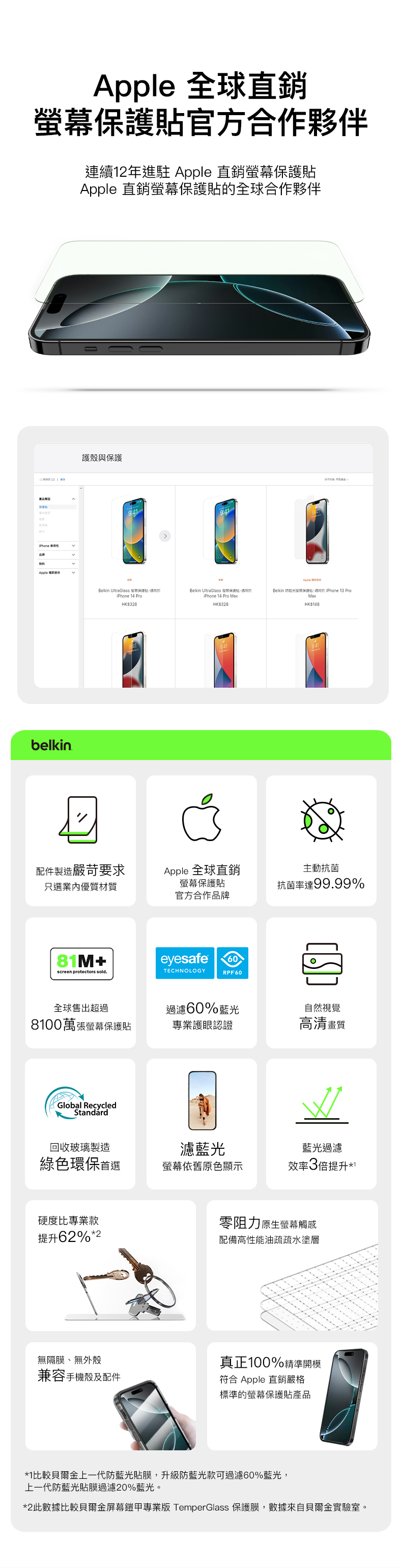 螢幕保護貼採用 Eyesafe 藍光過濾技術,以支援眼睛舒適度和睡眠品質。 InvisiGlass 的強度比強化玻璃高達 62%,其外觀和感覺與原廠螢幕完全一樣,並能防止撞擊、刮傷、裂縫、污跡、指紋等。它由 60% 的後工業回收 (PIR) 材料製成,讓原本會被丟棄的玻璃獲得新生,不會造成浪費。